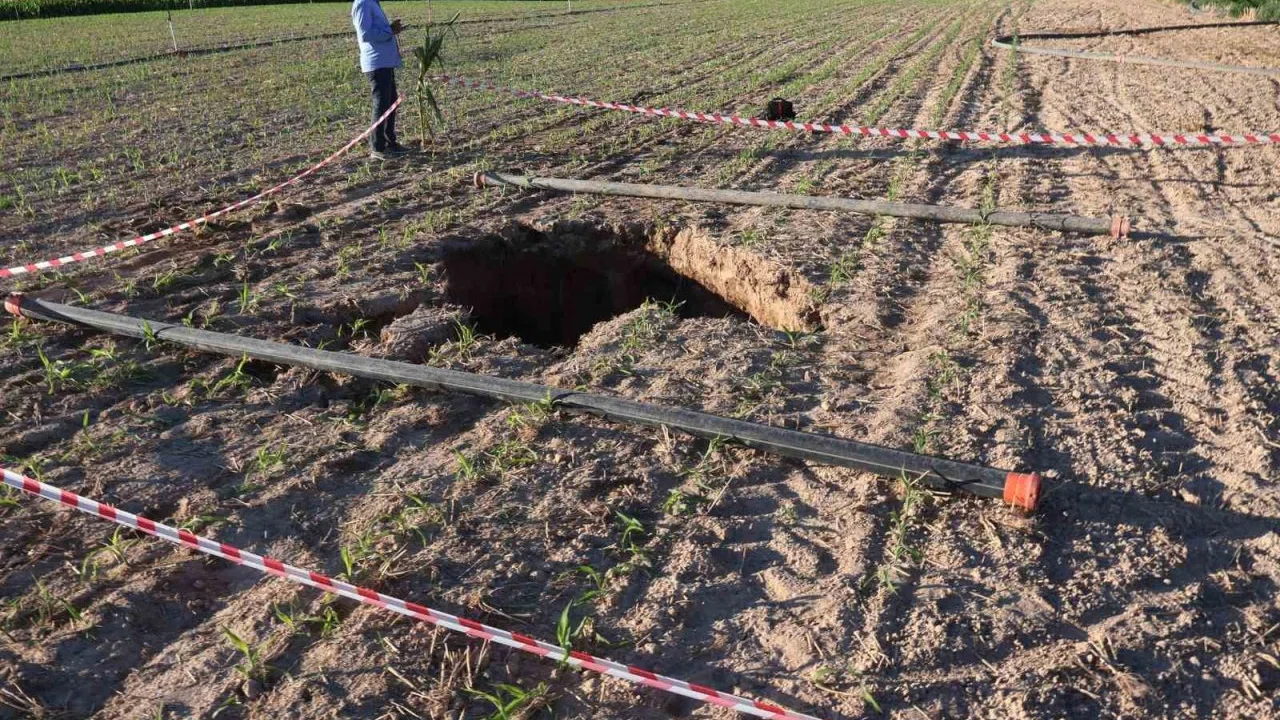 Hacı Neşeli, Dalamaz mevkisindeki mısır tarlasında obruk oluştuğunu fark etti.