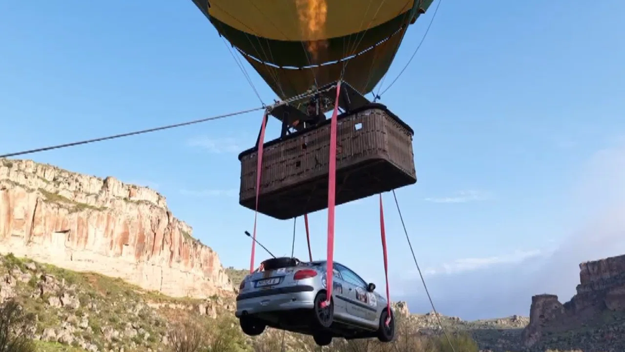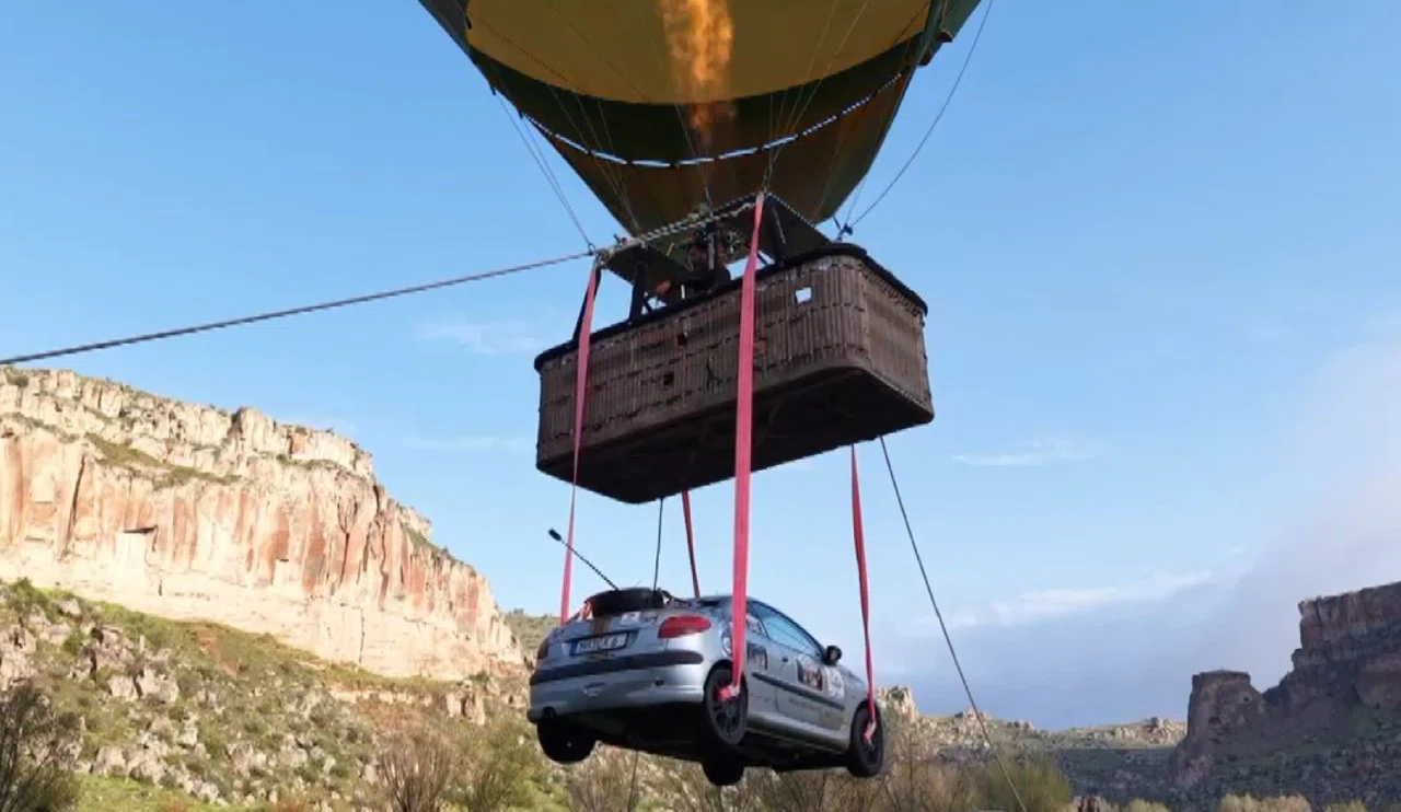 Ralli ekibi, kamp yaptıkları bölgede özel kayış ve halat sistemleri kullanarak bir otomobili sıcak hava balonunun sepetine sabitledi. Ardından balonun havalanmasıyla birlikte araç da gökyüzüne yükseldi. Dakikalar boyunca havada kalan otomobil, görsel bir şölene dönüşen uçuşun ardından güvenli bir şekilde yere indirildi.