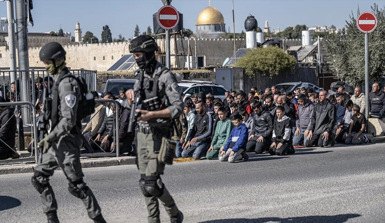 İsrail polisi, Mescid-i Aksa'ya giremeyip cuma namazını sokakta kılmak isteyenlerin bazı kişileri darbetti ve gazetecilerin bölgeye yaklaşmasına izin vermedi.