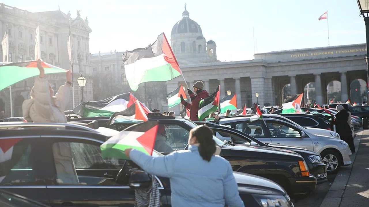 Konvoydaki ses düzeneği kurulan bir araçtan "Filistin'e özgürlük, ateşkes, soykırıma hayır" sloganları atılırken, İsrail'in 100 gündür Gazze, Batı Şeria ve Doğu Kudüs'te 24 bine yakın Filistinlinin ölümüne neden olan saldırıları ve yaşananlar Viyanalılara anlatıldı.