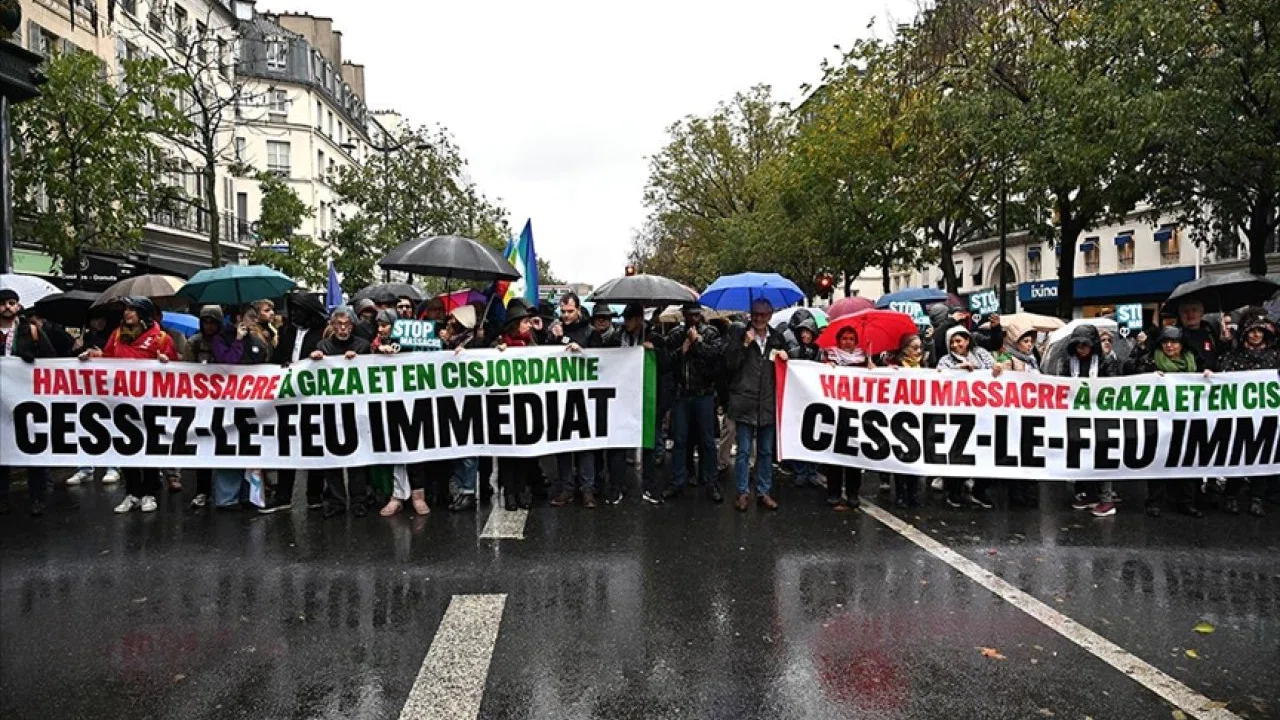 Fransız protestocular, gösteride, Gazze'de ateşkes sağlanmasını talep etti.