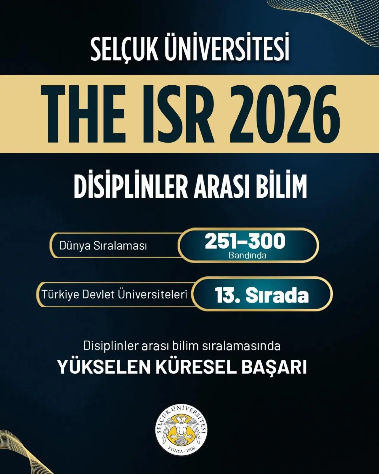 Bir diğer önemli başarı ise Times Higher Education (THE) ile Schmidt Science Fellows iş birliğiyle hazırlanan THE Disiplinlerarası Bilim Sıralaması (ISR) 2026 sonuçlarından geldi. Selçuk Üniversitesi, dünya genelinde 251–300 bandına, Türkiye’deki devlet üniversiteleri arasında ise 13. sıraya yerleşerek disiplinler arası bilim alanındaki güçlü performansını bir kez daha gösterdi. Sıralamada 11 farklı performans göstergesi esas alındı.