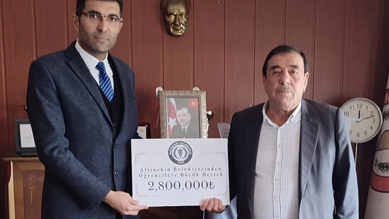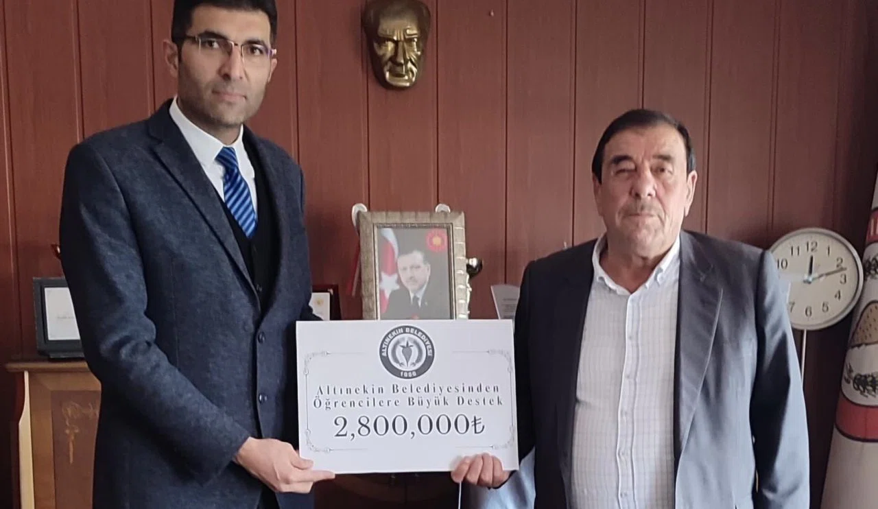 Altınekin Belediye Başkanı Muharrem DERE tarafından temsili nakdi eğitim destek çeki Milli Eğitim Müdür Vekili Mustafa KARATAŞ'a takdim edildi. Eğitim destekleri velilerin hesaplarına şivlilik gününde yatırılmaya başlandı.