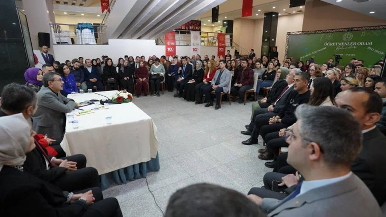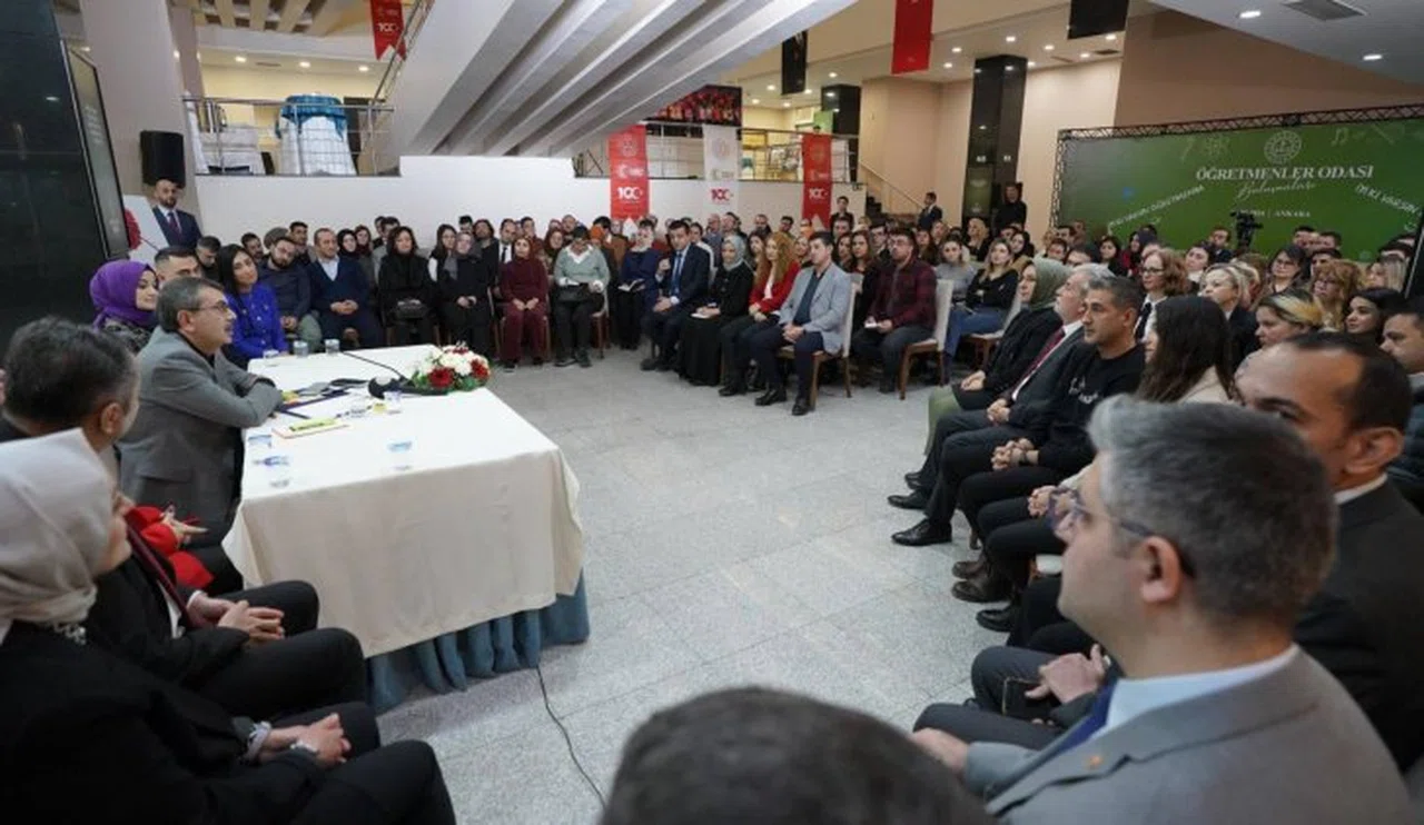 Millî Eğitim Bakanı Yusuf Tekin, “Öğretmenler Odası Buluşmaları” kapsamında başkent Ankara’da düzenlenen programda meslektaşlarıyla bir araya geldi. Öğretmenler Odası Buluşmaları programıyla her ayın ilk hafta sonunda farklı illerdeki öğretmenlerle bir araya gelen Millî Eğitim Bakanı Yusuf Tekin, bugüne kadar ikisi İstanbul’da olmak üzere Eskişehir, Konya, Kastamonu, Sivas ve ikinci kez Ankara’da gerçekleşen buluşmalarda binlerce öğretmenle istişarede bulundu, onlara tek tek söz vererek sahanın görüş, öneri ve taleplerini aldı. Buluşmanın başında 6 Şubat Kahramanmaraş depremlerinin yıl dönümü dolayısıyla hayatını kaybeden vatandaşları rahmetle anan Bakan Tekin, “Asrın felaketinde başta öğretmen ve öğrencilerimiz olmak üzere yaşamını yitiren tüm canlarımıza Allah’tan rahmet diliyorum” diye konuştu.