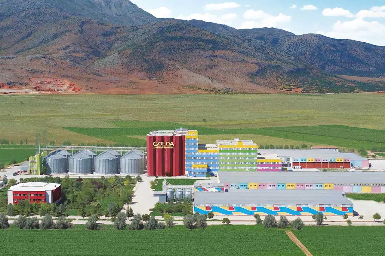 Golda Gıda'nın Kazımkarabekir'deki entegre üretim kompleksi, ölçeğiyle başlı başına dikkat çekiyor. 1.078.000 metrekare açık alan üzerine kurulu 76.082 metrekare kapalı üretim tesisinde makarna, irmik, un, bakliyat ve atıştırmalıklar olmak üzere beş bağımsız üretim hattı eş zamanlı olarak çalışmaktadır. Bu tesislerde yılda 120 bin ton buğday ve bakliyat işlenmekte; her üretim hattı tam entegre lojistik ve kalite altyapısıyla desteklemektedir.