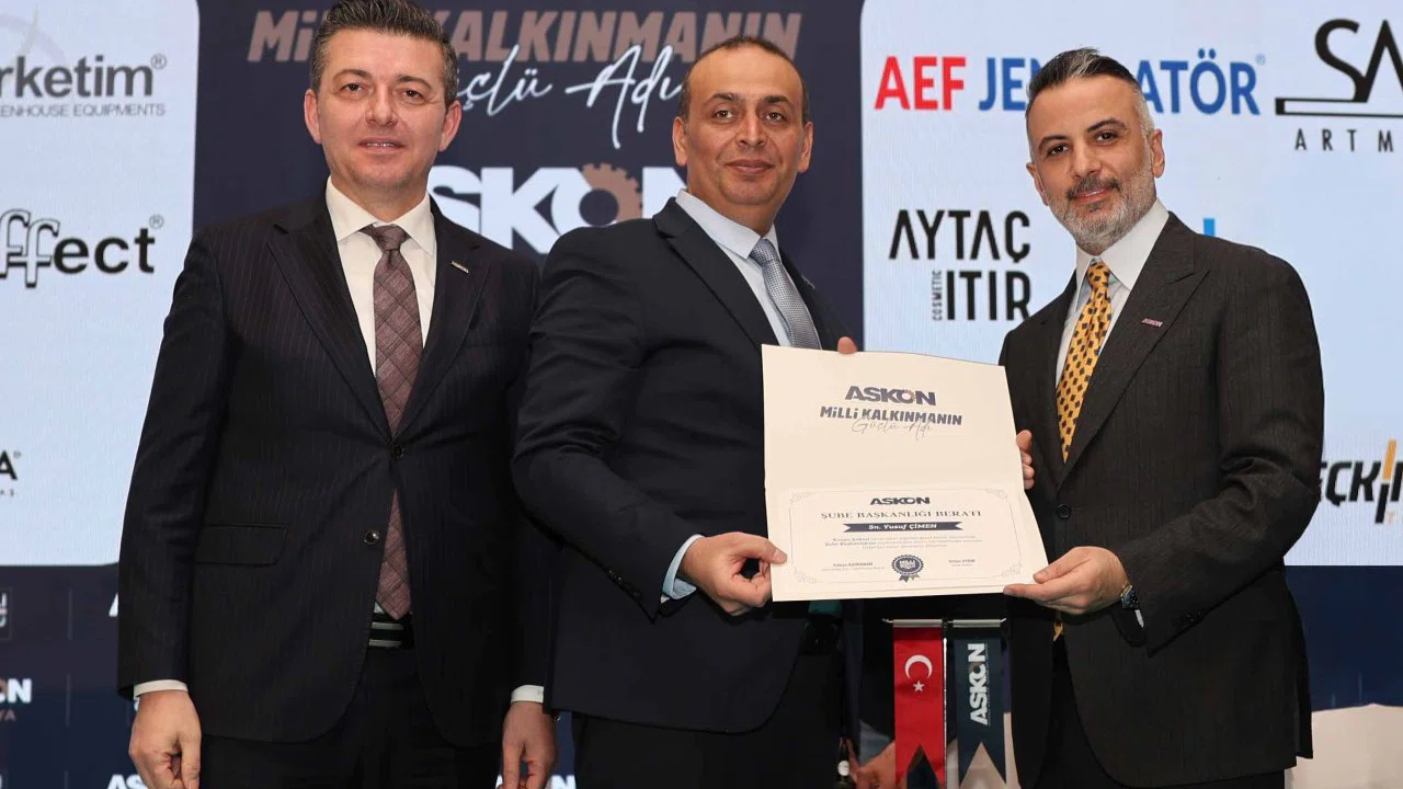 ASKON (Anadolu Aslanları İş Adamları Derneği) Konya Şubesi’nde önemli bir görev değişimi yaşandı. Mevcut Başkan Atilla Sinacı, işlerinin yoğunluğu nedeniyle başkanlık görevinden ayrıldı. Konya Şube yönetim kurulunun seçimi ve ASKON Genel Merkez yönetimi onayı ile daha önce başkan yardımcılığını başarıyla yürüten Yusuf Çimen, görevlendirme beratını ASKON Genel Başkanı Orhan Aydın’ın elinden aldı.