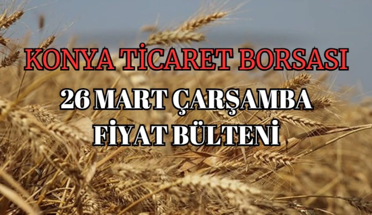 Konya Ticaret Borsası 26 Mart Çarşamba günü fiyat bülteni yayımlandı.