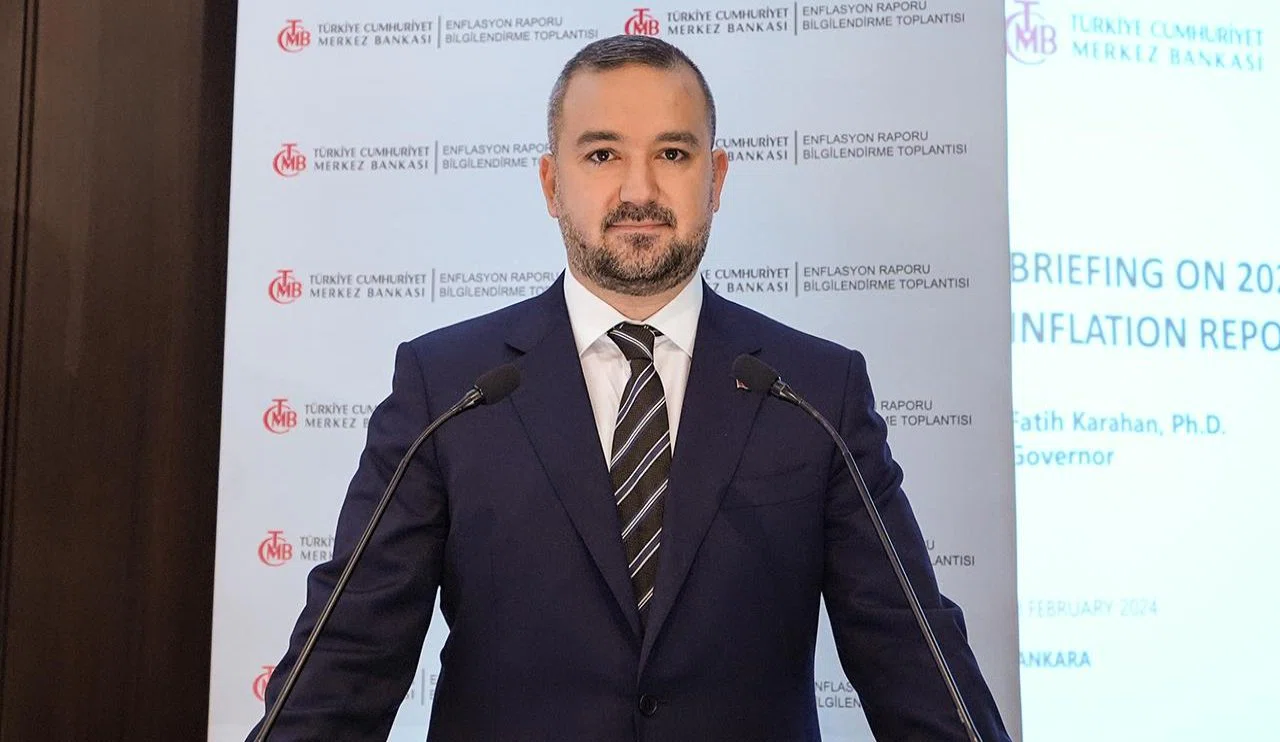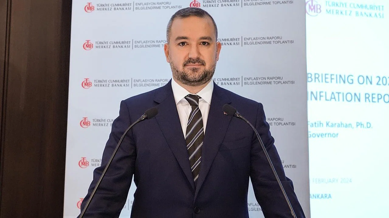 Türkiye Cumhuriyet Merkez Bankası (TCMB) Başkanı Fatih Karahan, bu yılın ilk enflasyon raporunun tanıtımı amacıyla düzenlenen bilgilendirme toplantısında konuşuyor.