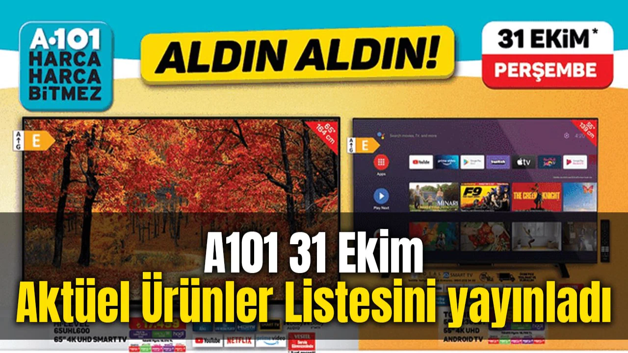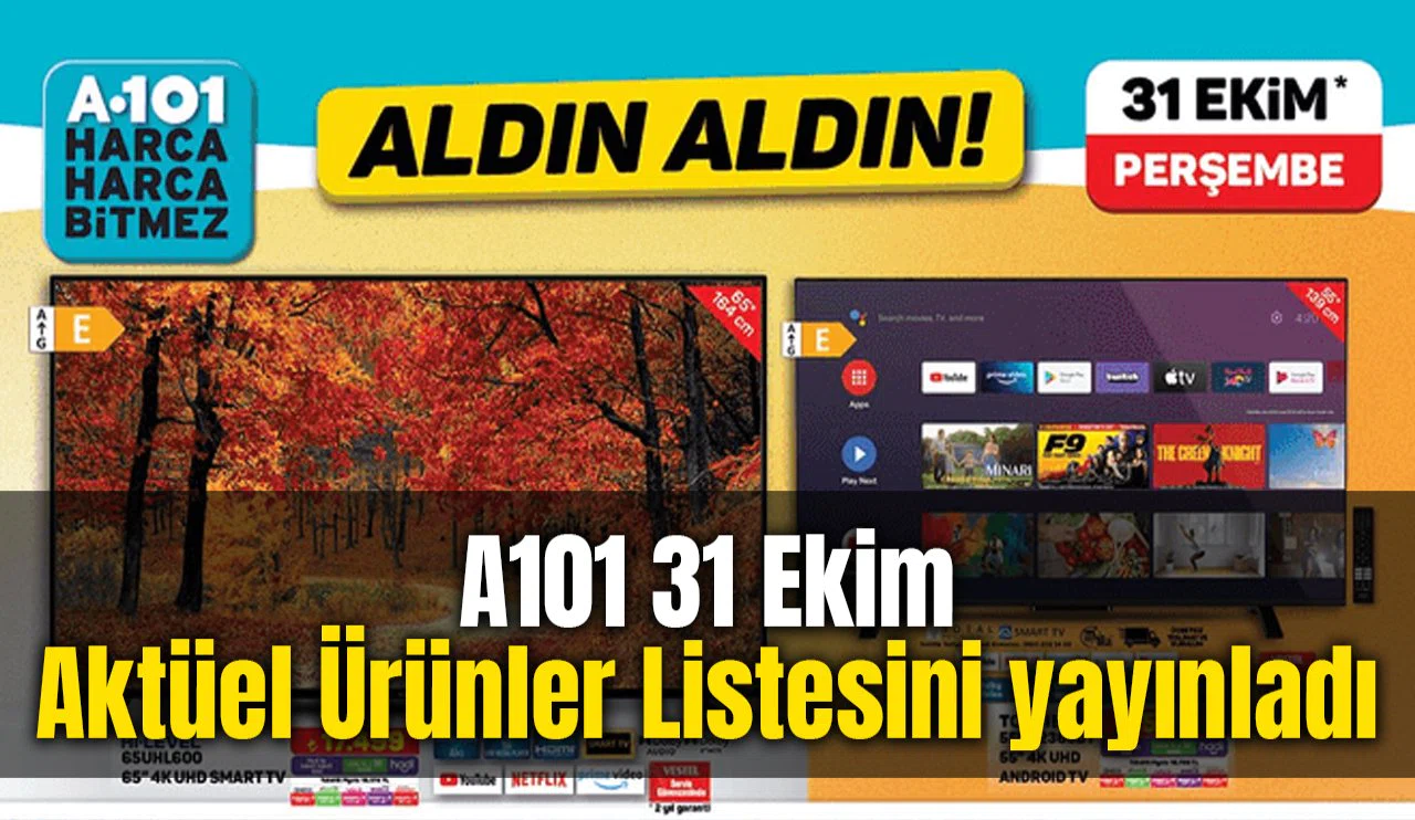 A101'in 31 Ekim tarihli aktüel ürünler kataloğunda beyaz eşya ürünlerine özel indirimler bulunmaktadır. İşte katalogda yer alan ürünler ve fiyatları:Beyaz EşyaFlavel FLV 7007 CM 7 kg Çamaşır Makinesi: 8.999 TLFlavel FLV 5 Programlı Bulaşık Makinesi: 9.999 TLRegal Beyaz 310 Ankastre Set: 13.499 TLFlavel FLV 2600 E Buzdolabı: 12.999 TLSamsung MS20A3010AL/TR Mikrodalga Fırın: 2.999 TLSinger M1605 Dikiş Makinesi: 3.999 TLKiwi KWP 8513 Şarjlı Su Pompası: 129 TLKiwi KSI 6-40 Portatif Buharlı Kırışık Giderici: 799 TLAprilla ATR1018 Saç Sakal Kesme Makinesi: 349 TLAprilla ARG95 Seramik Tabanlı Ütü: 2400 W 119 TL