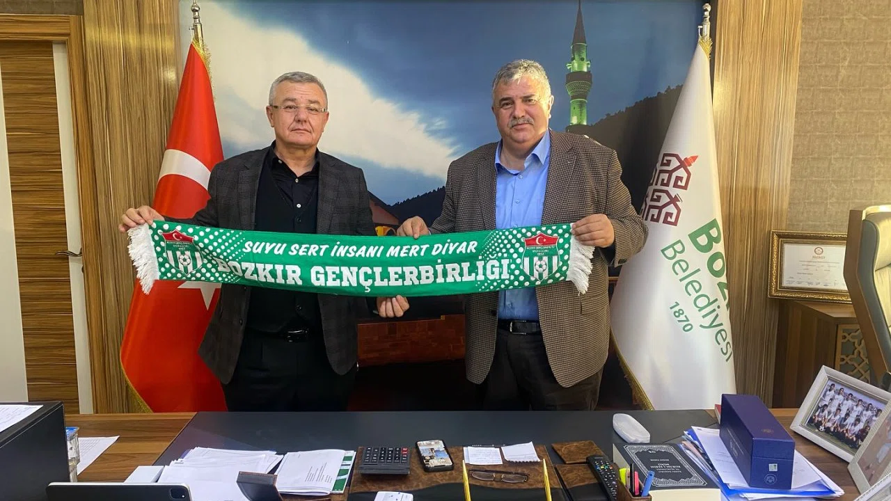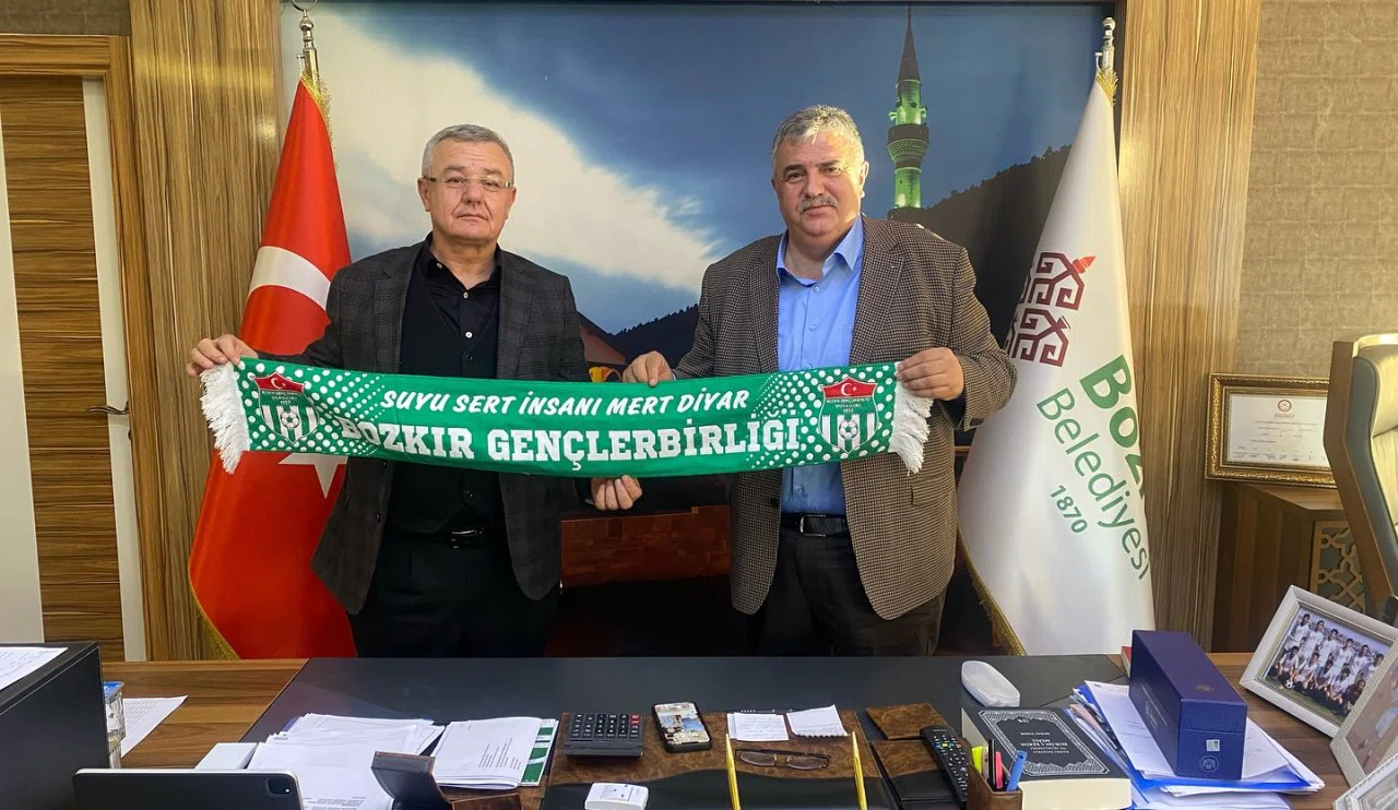 Konyaspor Yönetim Kurulu Üyesi ve Dutar Grup Elektrik A.Ş. Yönetim Kurulu Başkanı Mustafa Dutar, Bozkır Belediye Başkanı Nazif Karabulut’u ziyaret etti.Ziyaretten duyduğu memnuniyeti dile getiren Başkan Karabulut, Dutar’a Bozkır Gençlerbirliği atkısı hediye etti.