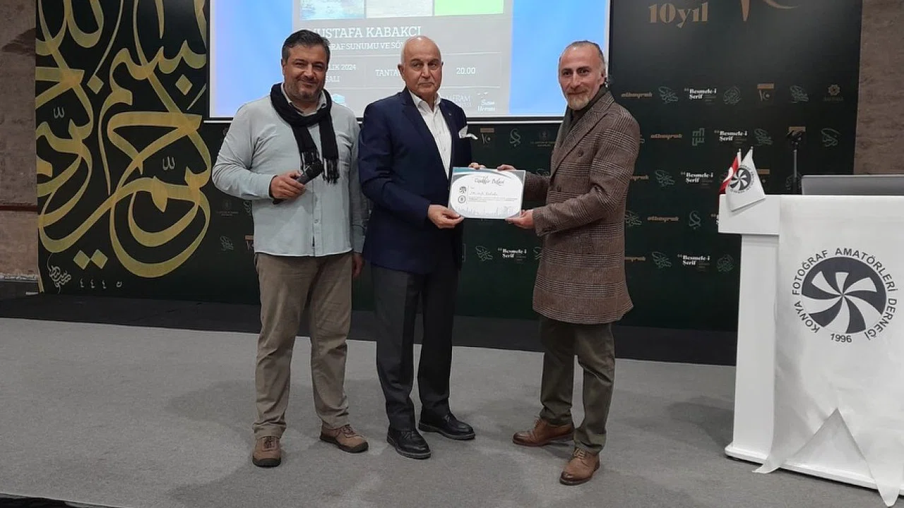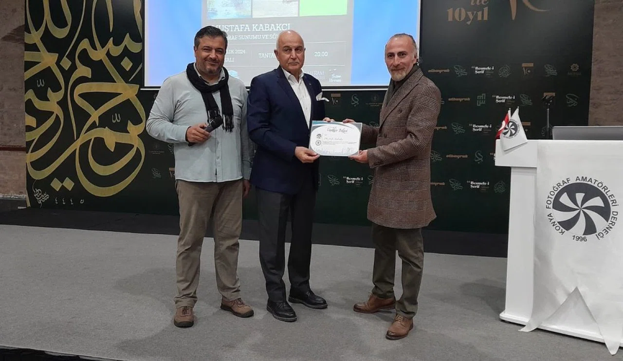Tantavi Kültür ve Sanat Merkezi’nde düzenlenen ‘KONFAD’lı Fotoğraf Günleri’ kapsamında ‘Yol Hikayeleri’ isimli fotoğraf sunumu ve söyleşi gerçekleştirildi.Söyleşiye eski Konya Milletvekili Mustafa Kabakcı konuşmacı olarak katıldı.Kabakcı’ya Türkiye Fotoğraf Sanatı Federasyonu Yönetim Kurulu Üyesi Celal Gezici teşekkür belgesi takdim etti.