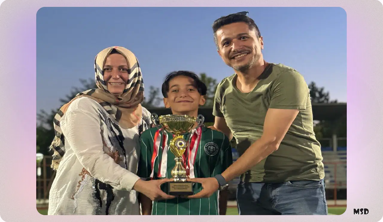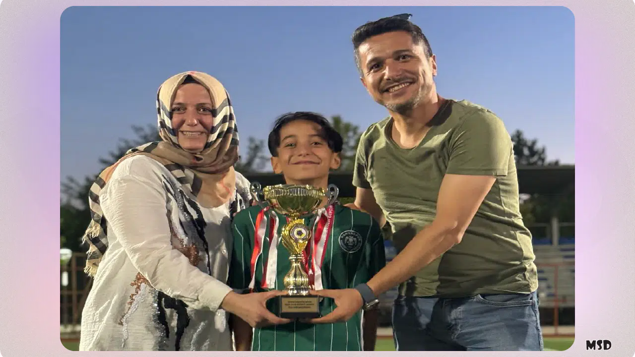 Ali Eymen ailesinin gururu olduJeoloji Mühendisleri Odası Konya Şube Başkanı Şükrü Arslan, eşi Yasemin Hanım ve evlatları Ali Eymen, Konyaspor U-13 Futbol Takımı’nın Şampiyonluk Kupası’nı birlikte kaldırdılar.