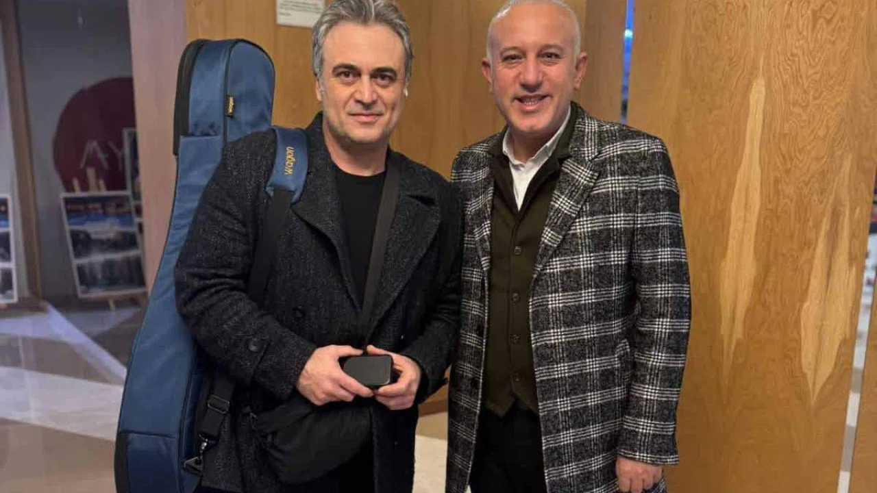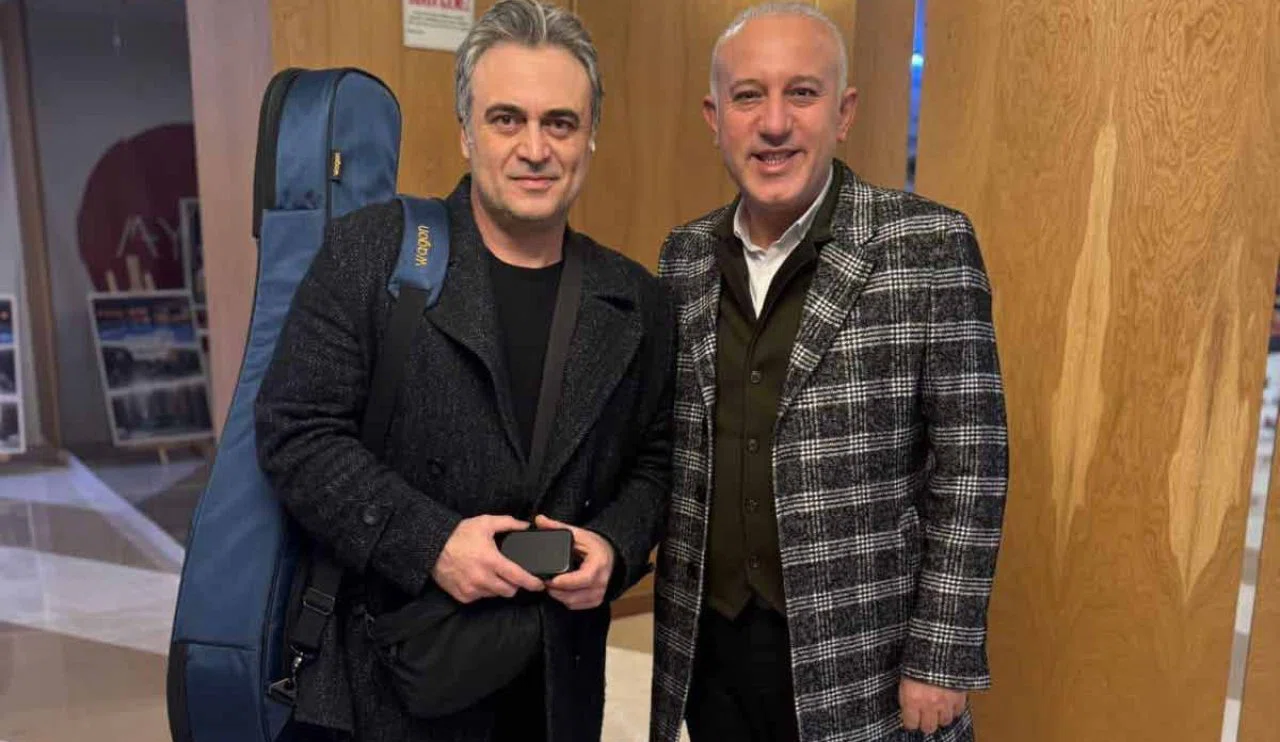 AVC Grup Yönetim Kurulu Başkanı Osman Avcıoğlu ve sevilen sanatçı Kutsi, konser sonrası bir araya gelerek fotoğraf çekinmiş.