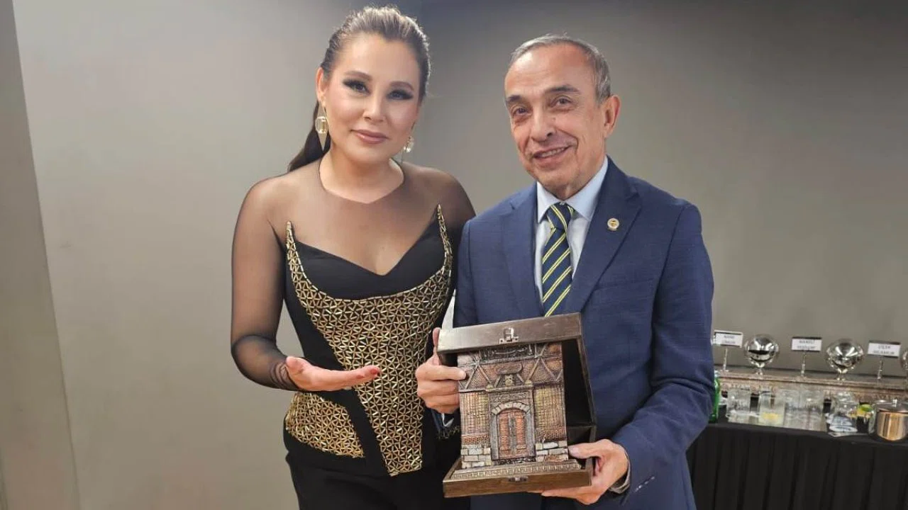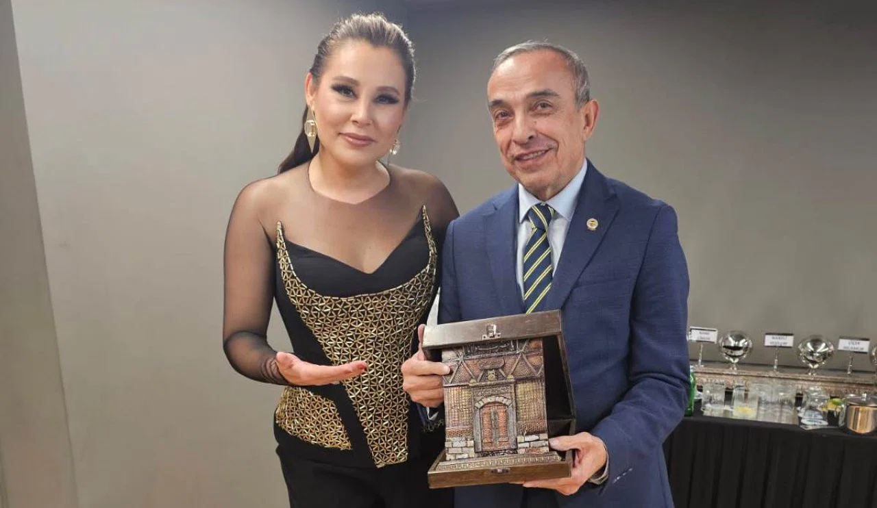 Konya Fenerbahçeliler Derneği Başkanı Bülent Kaşdoğan, sanatçı Funda Arar’a Konya programı sonrası hediye takdim etti.