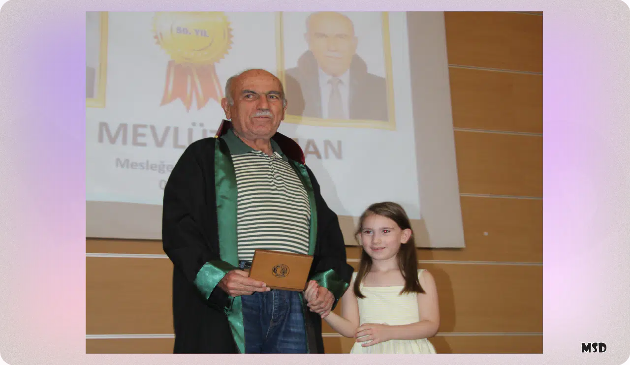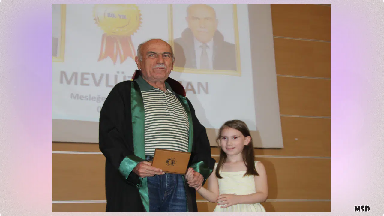 Konya Barosu tarafından meslekte 40. ve 50. yılını dolduran avukatlara plaket verildi. Başarılı Avukat Mevlüt Yaman, 50. yıl plaketini torunu Çağla Tunuslu’nun elinden aldı.
