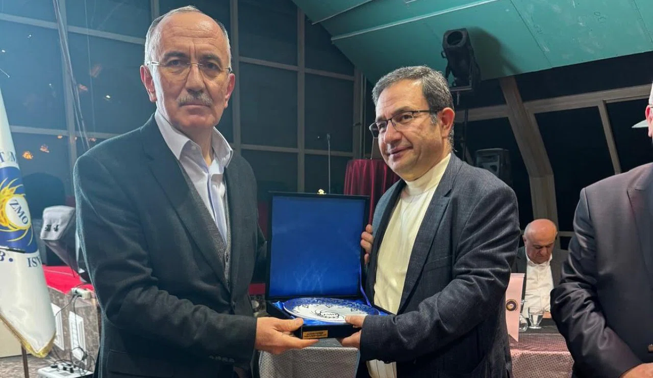 Ziraat Mühendisi Mustafa Gürlek, Ziraat Mühendisleri Odası tarafından düzenlenen programda 35 yıl onurluluğunu, Ticaret Borsası Meclis Başkanı Mehmet Büyükalim’in elinden aldı.