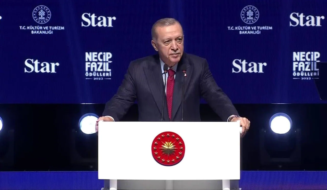 Cumhurbaşkanı Recep Tayyip Erdoğan, Atatürk Kültür Merkezi'nde düzenen Necip Fazıl Ödülleri programında konuşuyor.