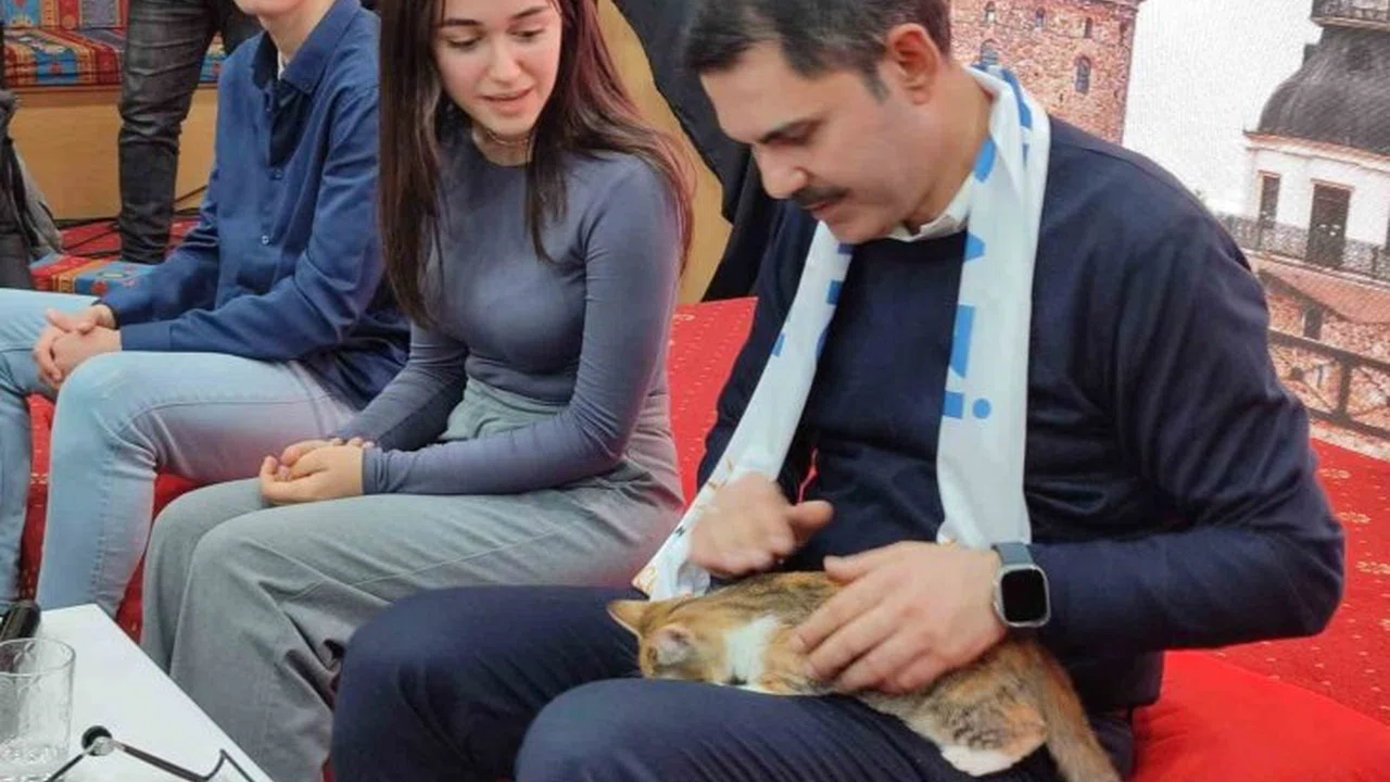 İBB Başkan Adayı Murat Kurum'a Sultangazi'de katıldığı gençlik buluşmasında bir öğrenci tarafından kedi hediye edildi. "Sacide" isimi kediyi seven Kurum, "Sacide'yi seçim kampanyamızın maskotu yapacağız. İstanbul'u Sacide'yle birlikte kazanacağız" dedi.