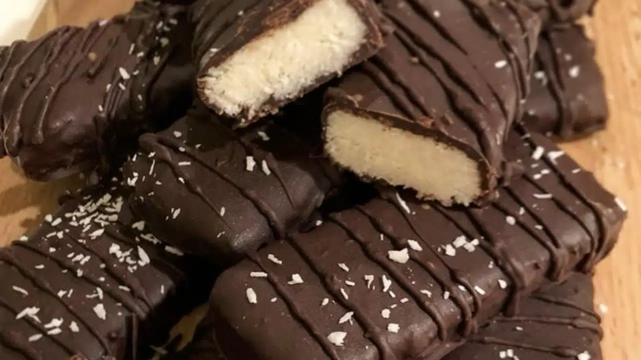 Muzlu cocostarları eritilmiş çikolataya batırıp tepsiye dizin.