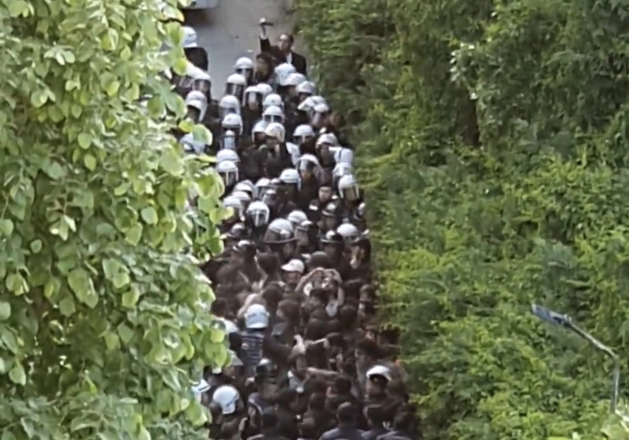 Polis ekipleri gruba dağılmaları yönünde uyarılarda bulundu. Ancak uyarılara rağmen dağılmayan protestocular, saat 20.45 sıralarında Çevik Kuvvet ekiplerine saldırdı. Olaylarda 13 polis hafif yaralandı.
