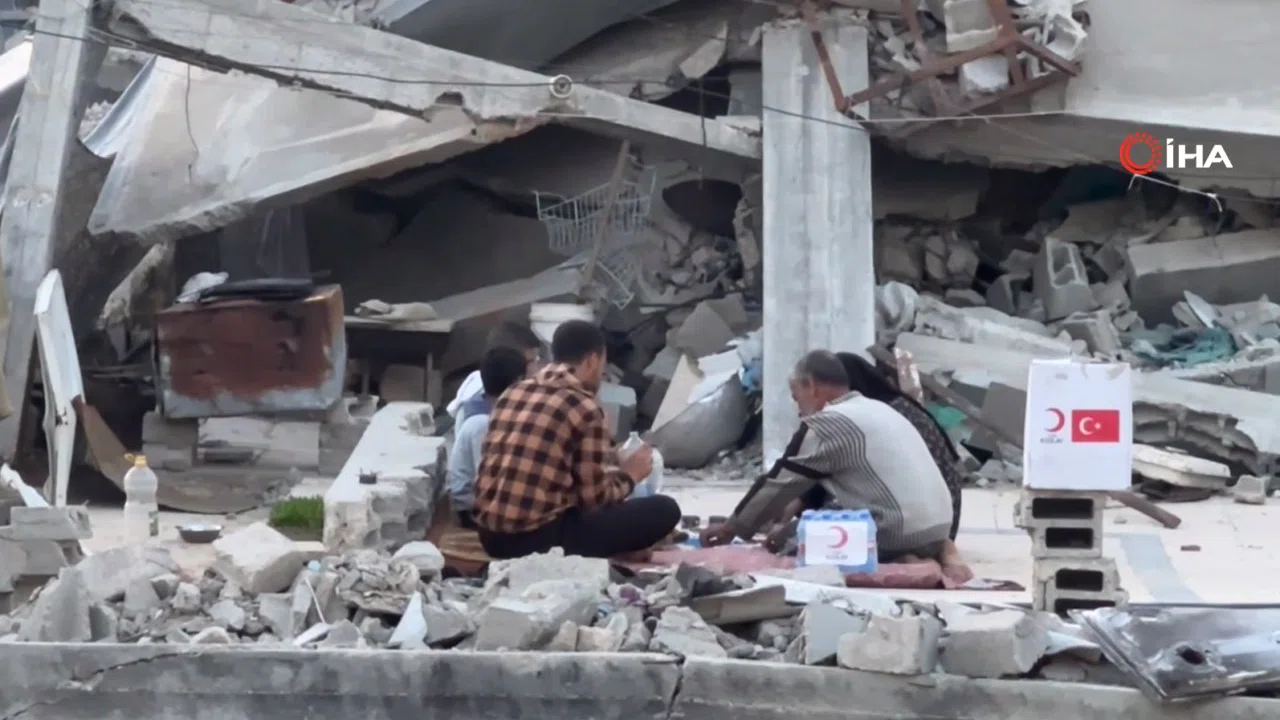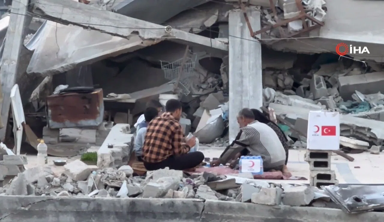 Gazze’nin güneyindeki Han Yunus bölgesinde, çatışmalar nedeniyle evleri yıkılan Ebu Amuna Ailesi, Türk Kızılay tarafından sağlanan iftarlık desteğiyle yıkıntılar arasında iftar yaptı. Aile, Kızılay’ın yardımlarıyla hayatta kalmayı sürdürürken, bu an, bölgedeki insani dramı bir kez daha gözler önüne serdi.
