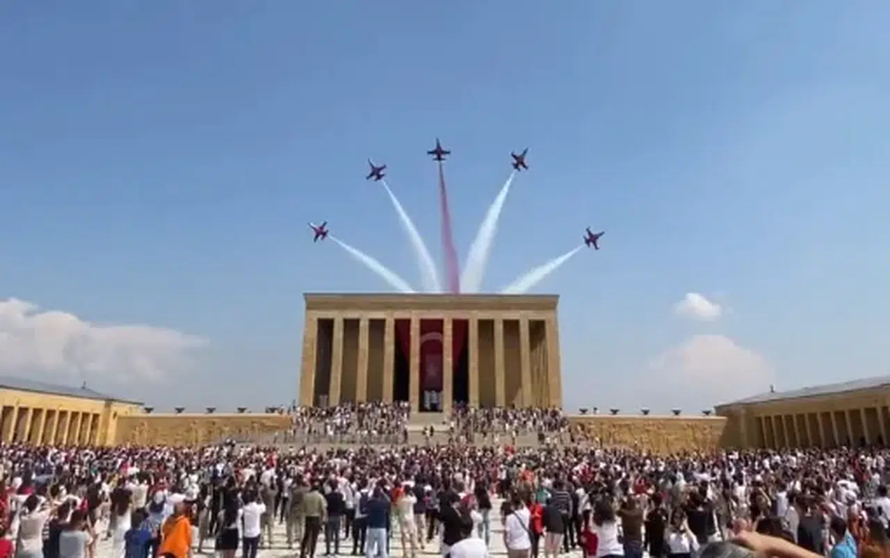 30 Ağustos Zafer Bayramı kutlamaları kapsamında, Türk Hava Kuvvetleri’nin akrobasi timi Türk Yıldızları, Anıtkabir semalarında unutulmaz bir gösteri gerçekleştirdi. Gazi Mustafa Kemal Atatürk’ün ebedi istirahatgahı üzerinde süzülen jetler, Ankara semalarında görsel bir şölen sunarken ziyaretçilere coşku dolu anlar yaşattı.