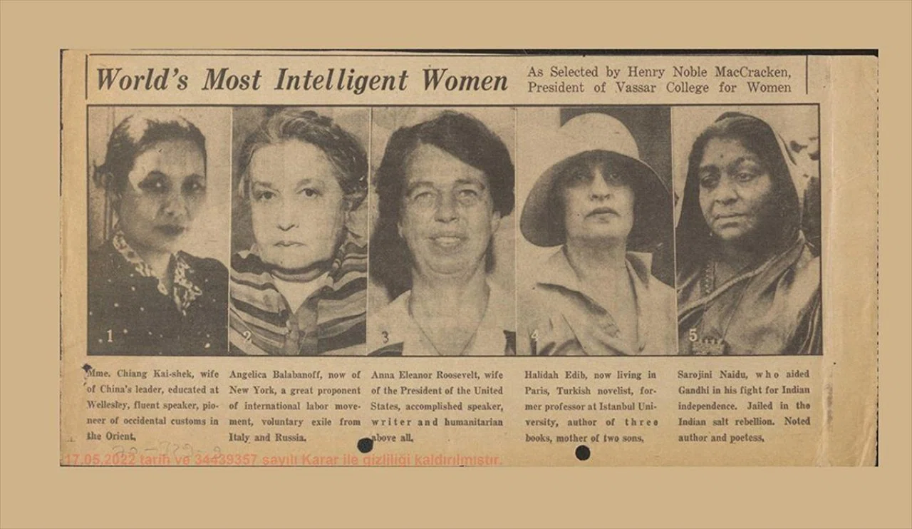 AA muhabirinin Cumhurbaşkanlığı Devlet Arşivleri başkanlığından aldığı bilgiye göre, Washington Daily News gazetesinin 31 Ağustos 1938 tarihli sayısında, Halide Edip Adıvar'ın Vassar Kadın Koleji tarafından, "dünyanın en zeki 5 kadını" arasında gösterildiğine ilişkin haber dikkati çekti.
