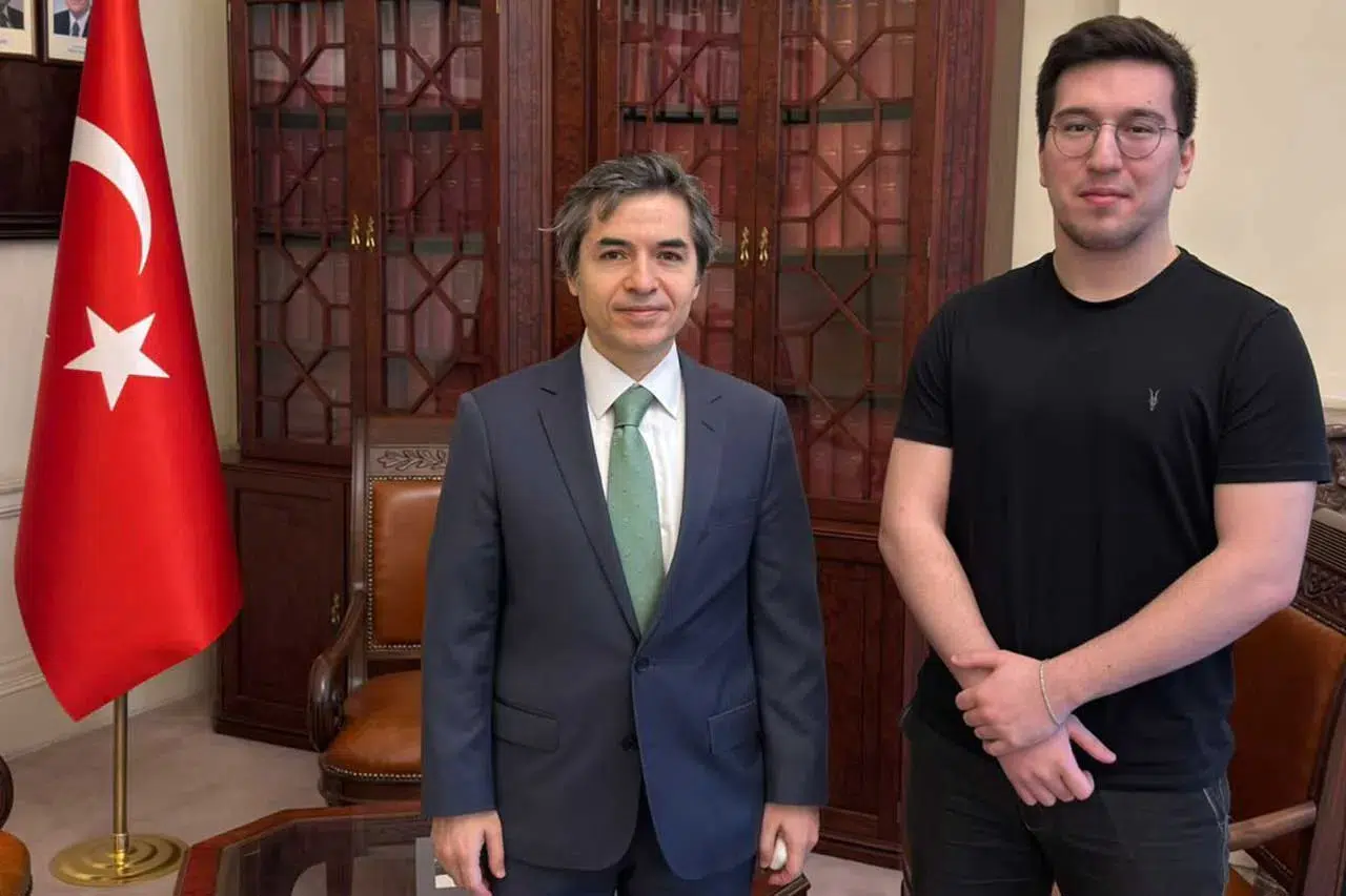 Büyükelçi Ertaş, genç öğrencimizi son derece sıcak ve samimi bir şekilde ağırlayarak, yurtdışında yaşayan Türk vatandaşlarının ve eğitim hayatına devam eden öğrencilerin her zaman yanında olduklarını vurguladı. Türk gençlerinin uluslararası alanda elde ettikleri başarıların ülkemiz için gurur kaynağı olduğunu ifade eden Ertaş, Süleyman Akkuş’un eğitim yolculuğunda kendisine başarılar diledi.