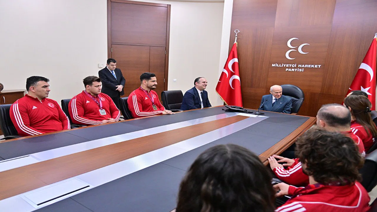 AA'da yer alan habere göre; MHP Genel Başkanı Devlet Bahçeli, Avrupa şampiyonu olan Güreş Milli Takımı'nı kabul etti.
