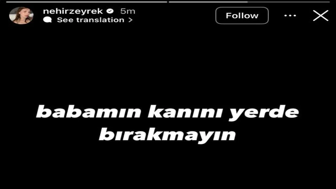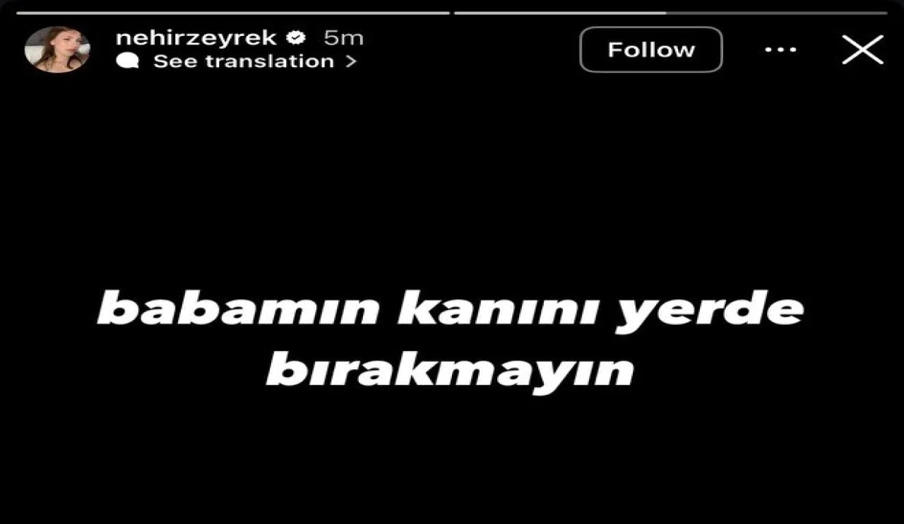 Başkan Zeyrek’in kızı Nehir Zeyrek, Instagram hesabı üzerinden yaptığı bir hikâye paylaşımında dikkat çeken ifadeler kullandı. “Babamın kanını yerde bırakmayın” diyen Nehir Zeyrek, olayın bir kaza olmadığını ima ederek elektrik sistemindeki arızalar konusunda daha önce yapılan uyarıların dikkate alınmadığını öne sürdü.