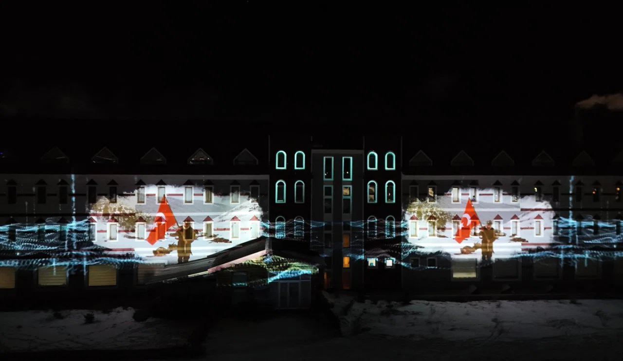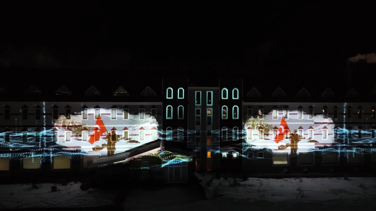 Ardından kayak merkezinde bir otelin dış yüzeyine yansıtılan görüntülerle Sarıkamış Şehitleri Mapping 3D gösterisi düzenlendi.