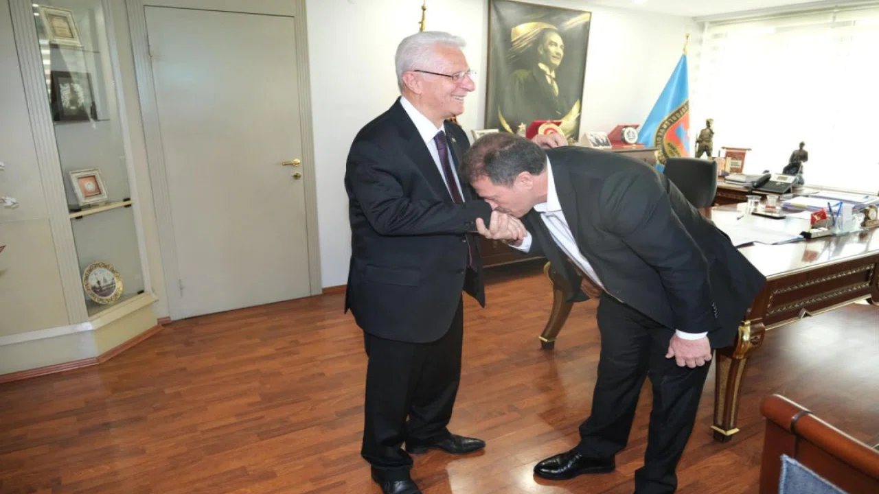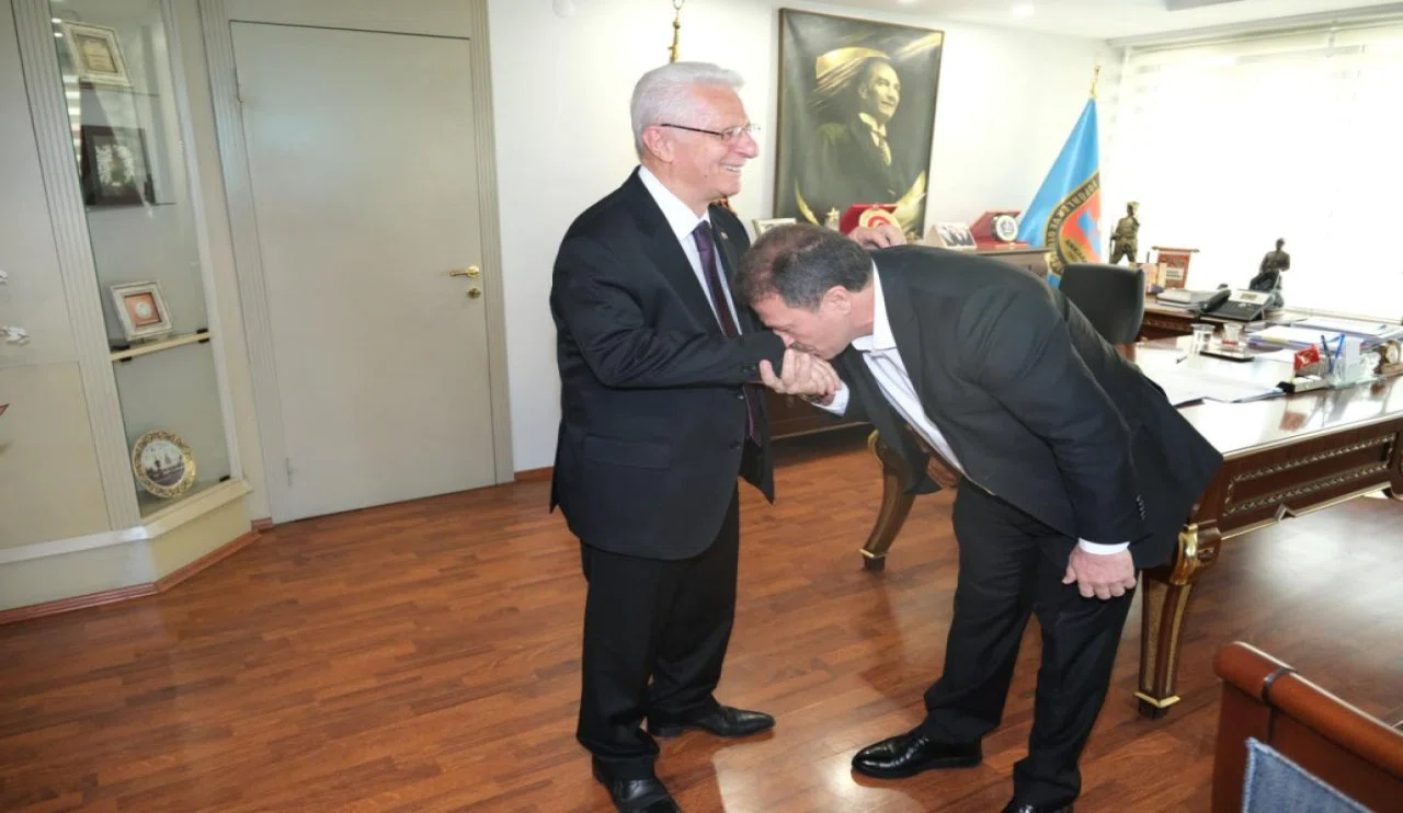Mehmet Yiğiner görevi alırken alışlanacak hareket gösterdi görevi devraldığı Fevzi Apaydın'ın elini öptü.