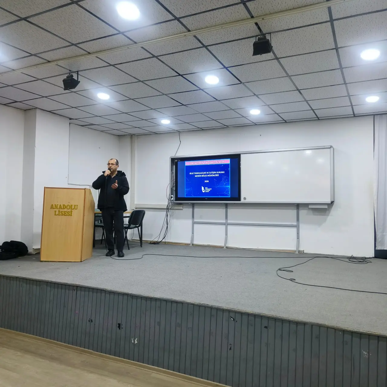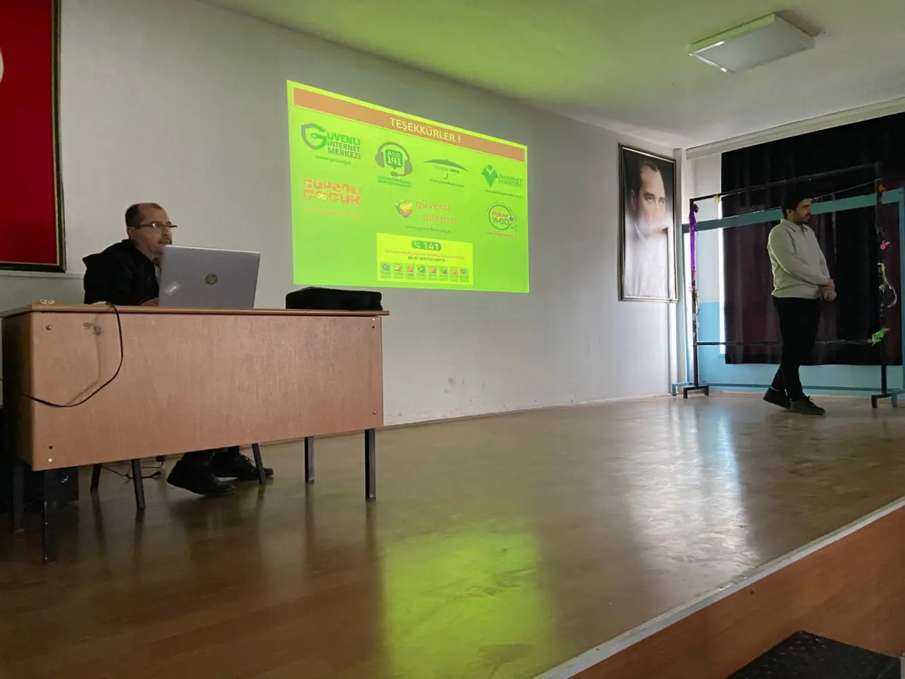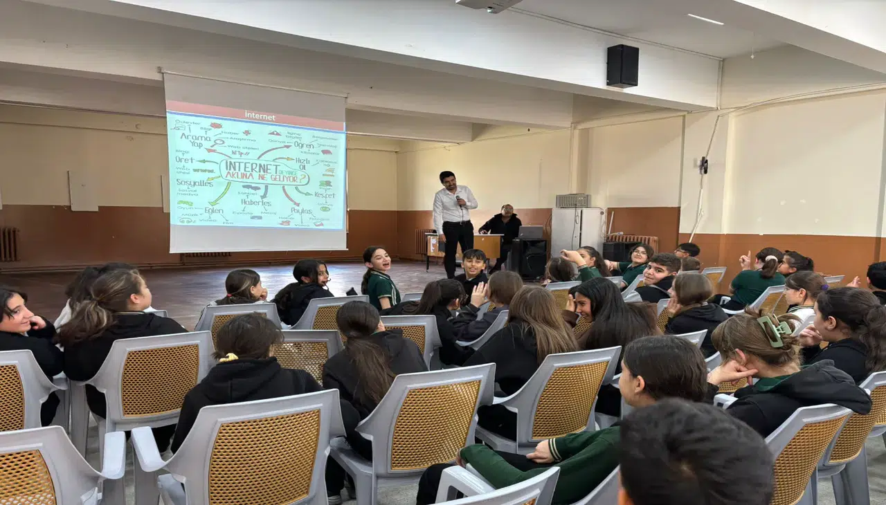 Bilgi Teknolojileri ve İletişim Kurumu (BTK) Mersin Bölge Müdürlüğü uzmanları Yusuf Doğan ve Ahmet Koşay’ın katıldığı programda, internetin günlük yaşam içerisindeki yeri ve önemi ele alındı. Seminerde özellikle gençlerin dijital ortamda karşılaşabileceği riskler detaylı şekilde değerlendirildi.