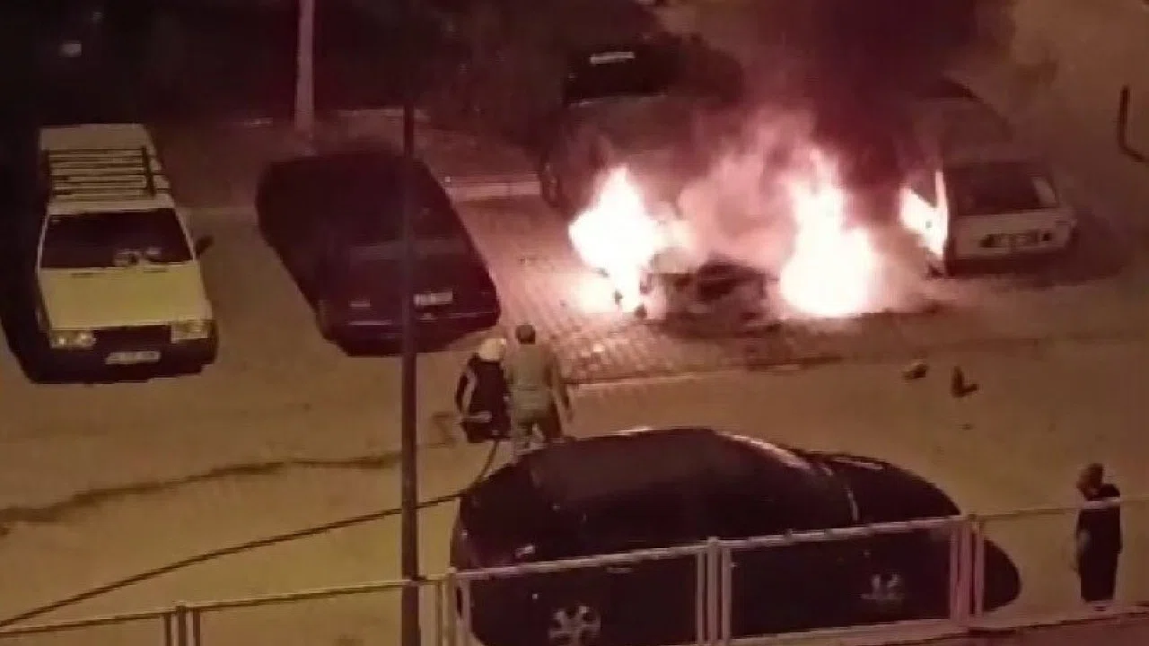 İhbar üzerine olay yerine itfaiye ve polis ekipleri sevk edildi. Bu sırada çevredeki bir vatandaş, yangın söndürme tüpüyle araca müdahale etmeye çalıştı. Kısa sürede adrese ulaşan itfaiye ekipleri, alevlerin diğer araçlara sıçramasını önleyerek yangını kontrol altına aldı.