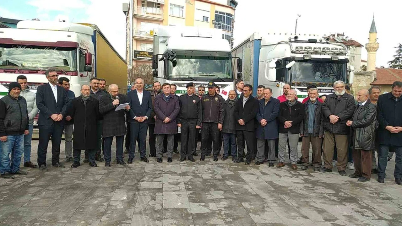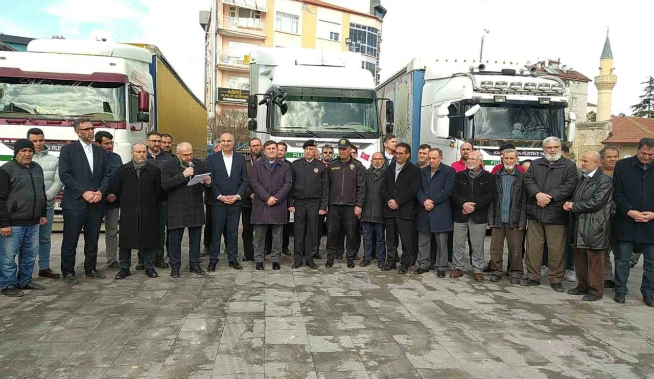 Anadolu'da Bugün Karaman Haber Karaman’dan Filistin’e 4 yardım tırı dualarla uğurlandı