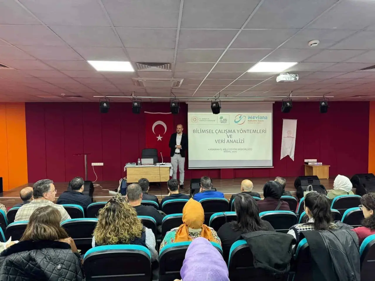 Karaman İl Millî Eğitim Müdürlüğü tarafından yürütülen ve Mevlana Kalkınma Ajansı (MEVKA) 2025 Yılı Teknik Destek Programı kapsamında desteklenen “Bilimsel Araştırma Yöntemleri ve Veri Analizi Eğitimi”, 13 Nisan 2026 tarihinde düzenlenen açılış programıyla başladı.