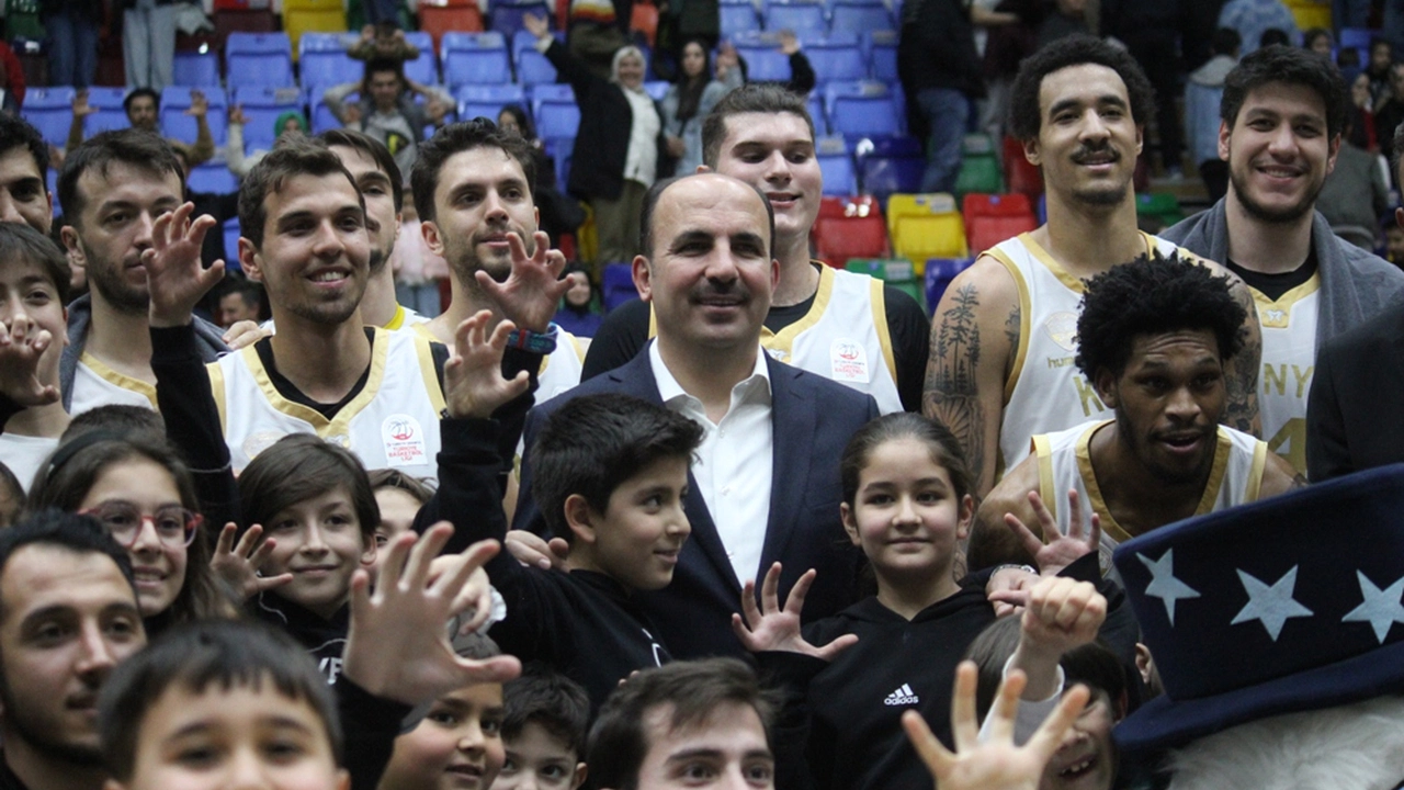 Başkan Altay, Selçuklu Belediyesi Spor Salonu’nda Pizzabulls Co Basket’i 96-84 ile geçen ve 18. galibiyetini alan sarı siyahlı ekibi tebrik eti. Altay, bitiş düdüğünün ardından parkeye inerek teknik heyet ve oyuncuları kutladı.