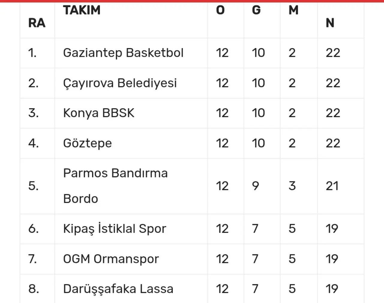 Koç değişikliği yaşayan ve takımın başına Tutku Açık’ı getiren Bandırma Bordo ise Süper Lig’den yaptığı yeni transferlerle çıkışa geçti. Üst üste galibiyetler alan Balıkesir ekibi, 9 galibiyet ve 3 yenilgiyle 5. sırada yer alıyor. Kahramanmaraş Kipaş İstiklal, OGM Ormanspor ve Darüşşafaka ise 7 galibiyetle takipte yer alıyor.