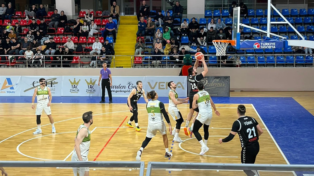 Konya BBSK'nın üçüncü çeyrekte geri dönme çabaları sonuç vermedi ve Haremspor farkı koruyarak son periyoda 72-62 önde girdi.