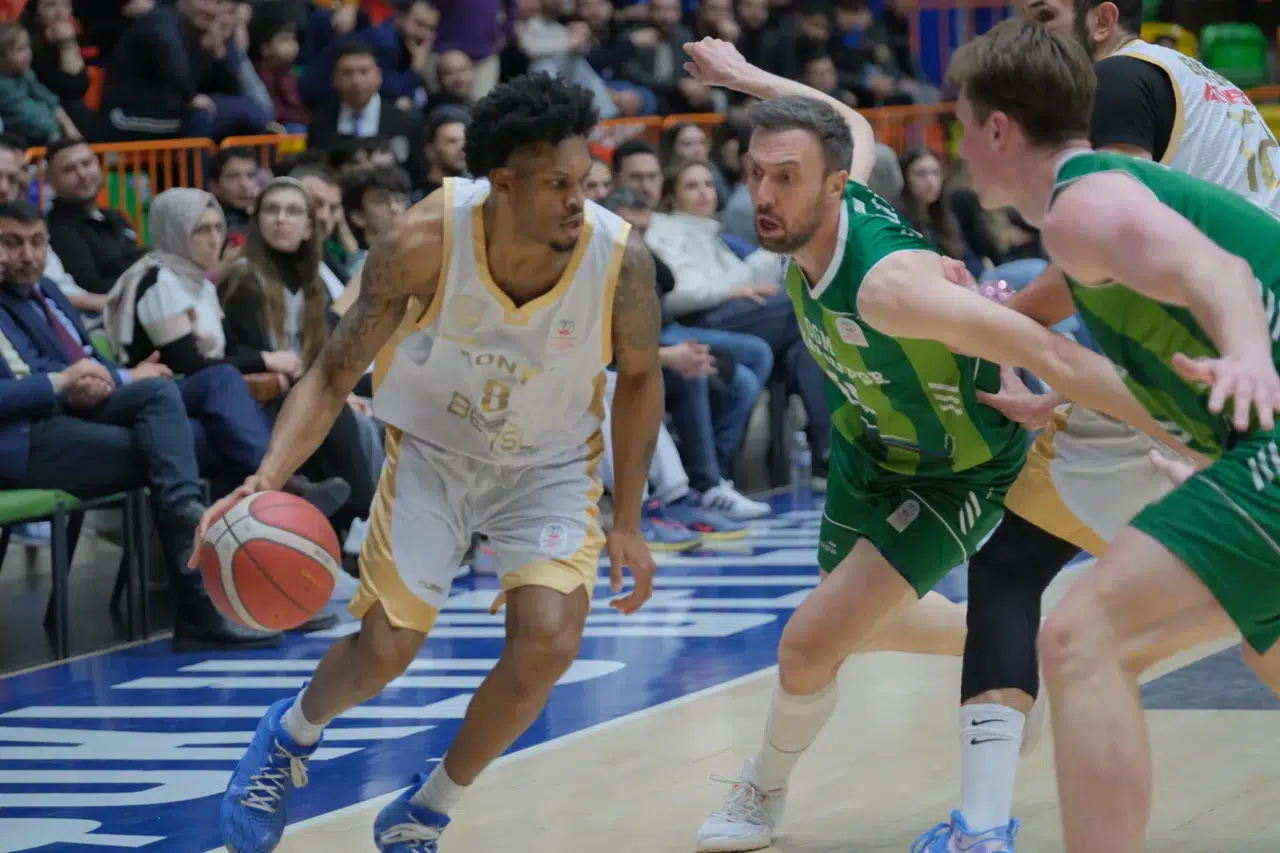 Ligdeki 16. galibiyetini alan Konya Büyükşehir Belediyespor'da Alp Karahan 30 sayı, 3 ribaunt, 5 asistle maça damga vurdu.