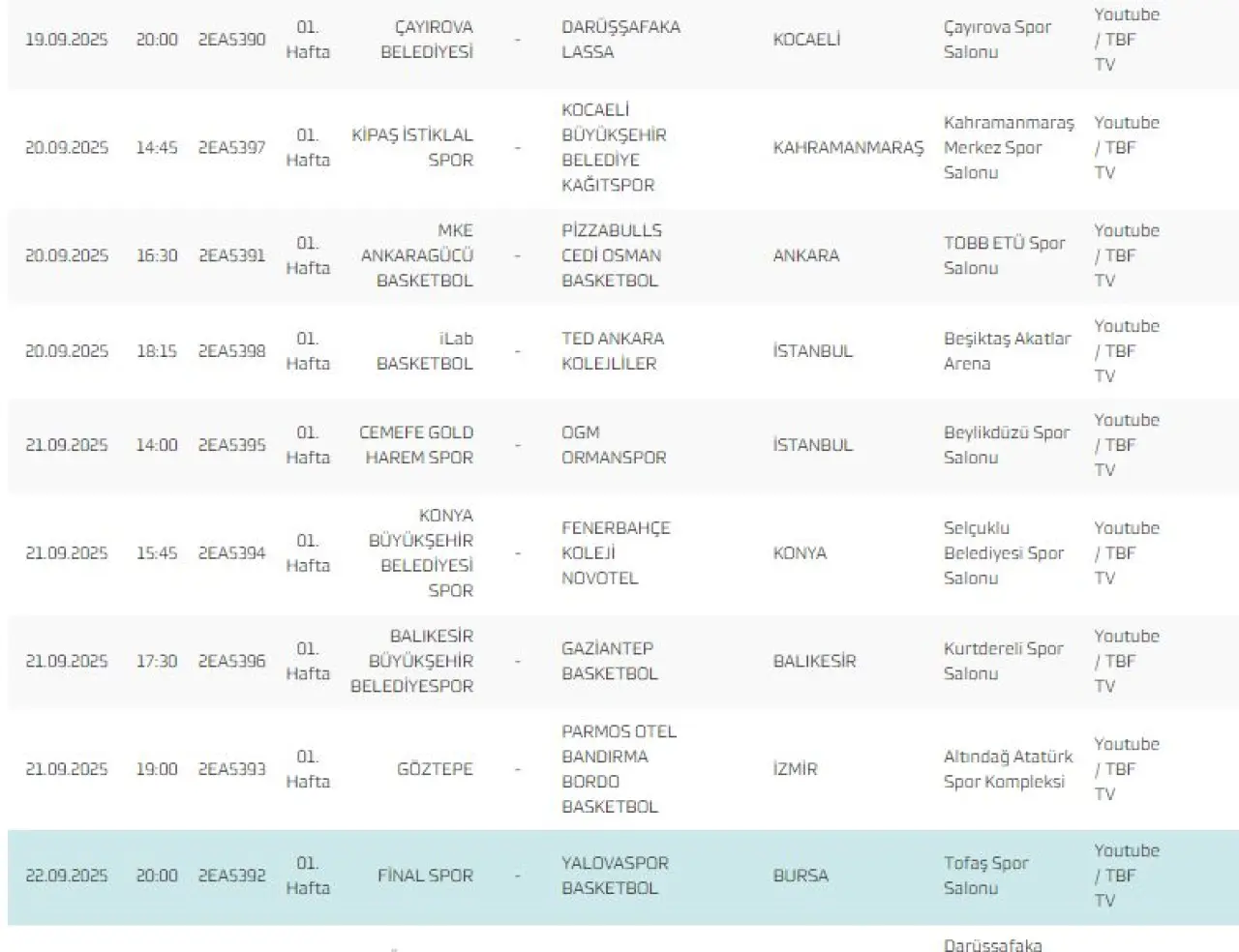 TBF ile HT Spor, TBL’nin 2025-26 sezon yayın hakları için anlaşmaya vardı. HT Spor sezon içinde Cuma ve Pazartesi günü oynanacak maçları canlı yayınlayacak. Diğer maçlar yine TBF Youtube’dan yayınlanmaya devam edecek. TBL'nin yayıncısı yıllardır TRT'idi.