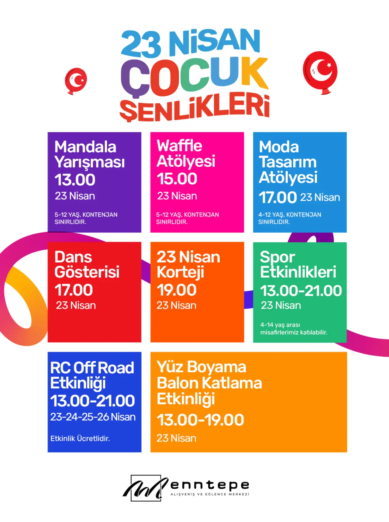 Tüm etkinliklerin ücretsiz olarak gerçekleştirileceği 23 Nisan Çocuk Şenliği’nde Enntepe, Konya halkını ve tüm misafirlerini bu özel günü birlikte kutlamaya davet ediyor.