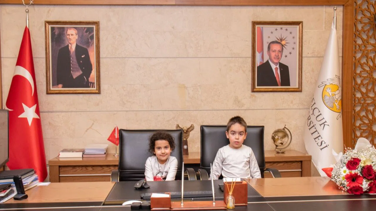 Minik öğrenciler, sembolik olarak Rektörlük koltuğuna oturarak “Rektör olsanız ilk ne yapardınız?” sorusunu yanıtladı. Çocukların yanıtları yüzlerde tebessüm oluşturdu: “Kampüse top havuzu, oyun parkı ve spor salonu isteriz!” diyen minik rektörler, hayal güçleriyle gönülleri fethetti.