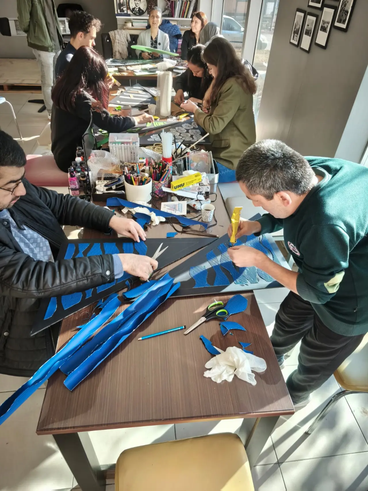 Workshop süresince öğrenciler; atölye tarafından geliştirilen yöntemler doğrultusunda farklı materyalleri dönüştürme, yeniden kullanma ve özgün tasarımlar ortaya çıkarma deneyimi yaşadı.