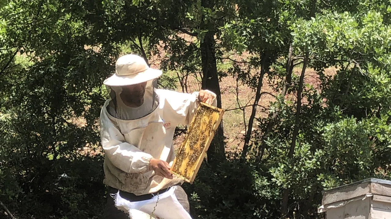 Konya'nın Bozkır ilçesine bağlı Dereköy Mahallesi'nde bayramda da üretim durmadı. Konya İl Tarım ve Orman Müdürlüğü ekiplerinin yaptığı ziyarette, 80 yaşındaki Mehmet Yılmaz ve oğlu Osman Yılmaz, arıcılık faaliyetlerine aralıksız devam etti.