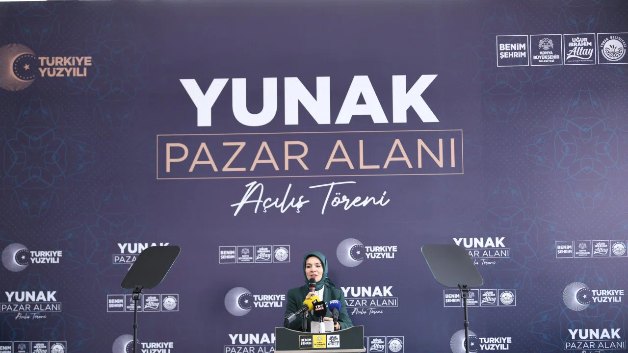 Aile ve Sosyal Hizmetler Bakanı Mahinur Özdemir Göktaş ise, Yunak Kapalı Pazar Alanının Yunak’a hayırlı olmasını dileyerek konuşmasına başladı.
