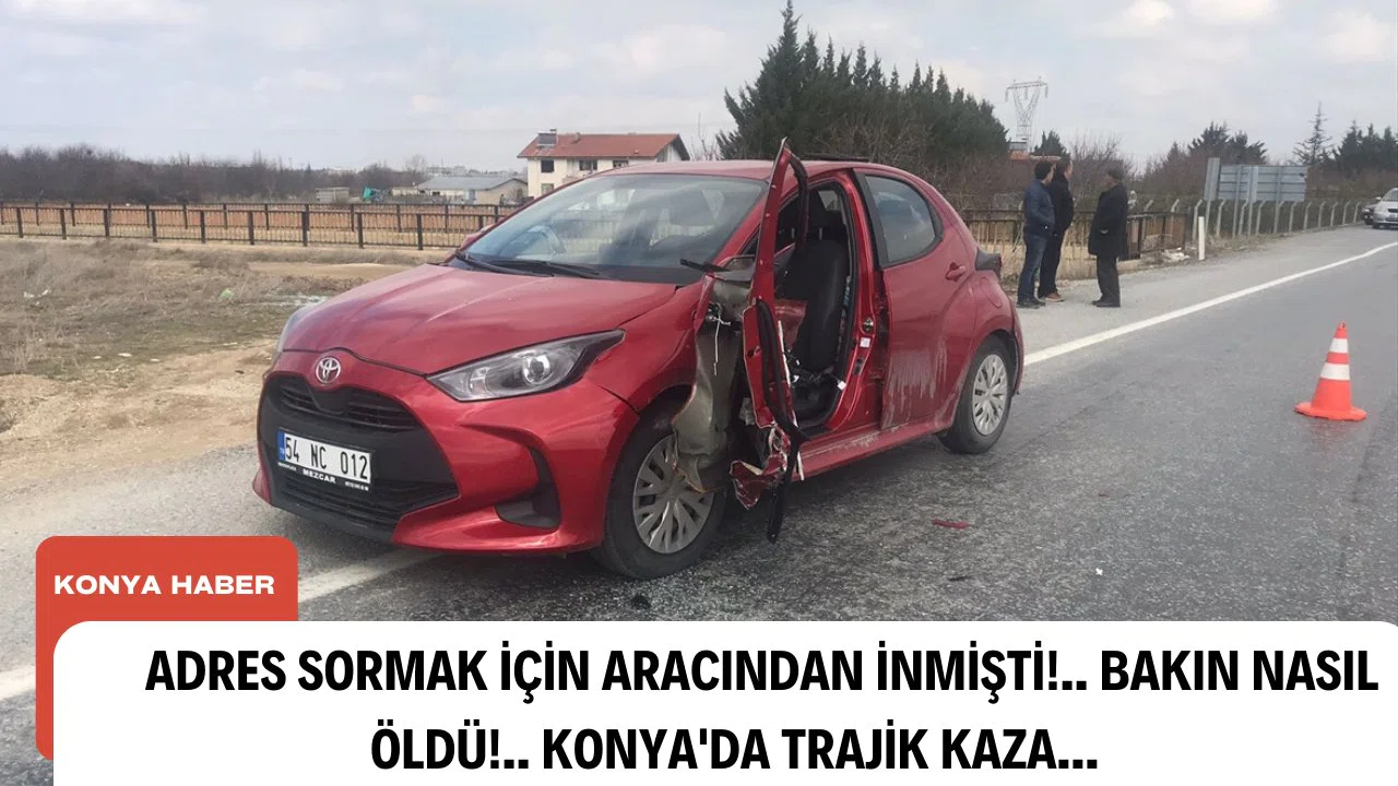 AA'da yer alan habere göre; Konya'nın Akşehir ilçesinde, adres sormak için otomobilinden inen sürücü, arkadan gelen otomobilin çarpması sonucu hayatını kaybetti.