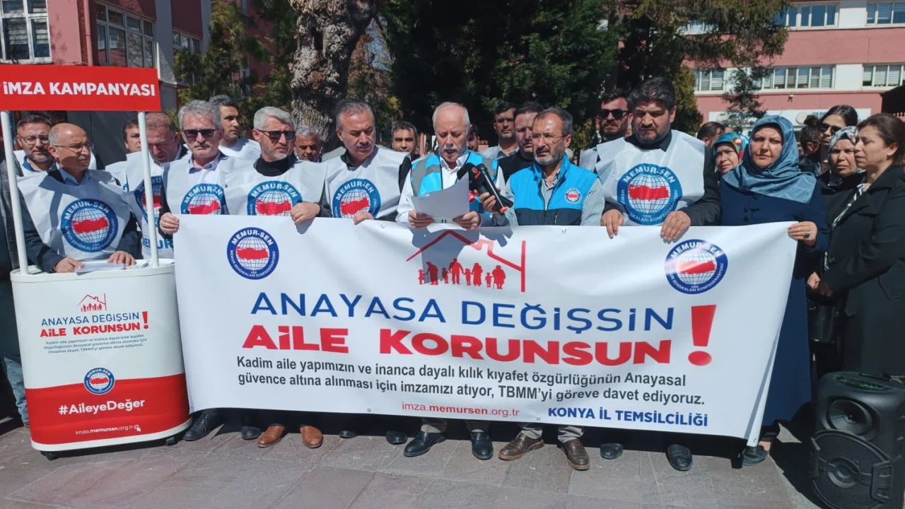 Memur-Sen Konya İl Temsilciliği tarafından, Gedavet Parkında basın açıklaması düzenledi. Açıklamada ‘Anayasa Değişsin, Aile Korunsun’ kampanyasının detayları paylaşıldı. Açıklamaya Memur-Sen Konya İl Temsilcisi Nazif Karlıer ve yönetim kurulu üyeleri katıldı.