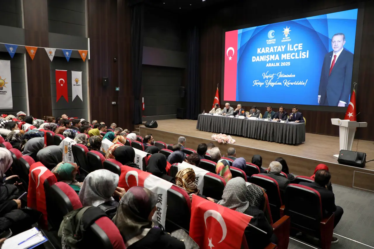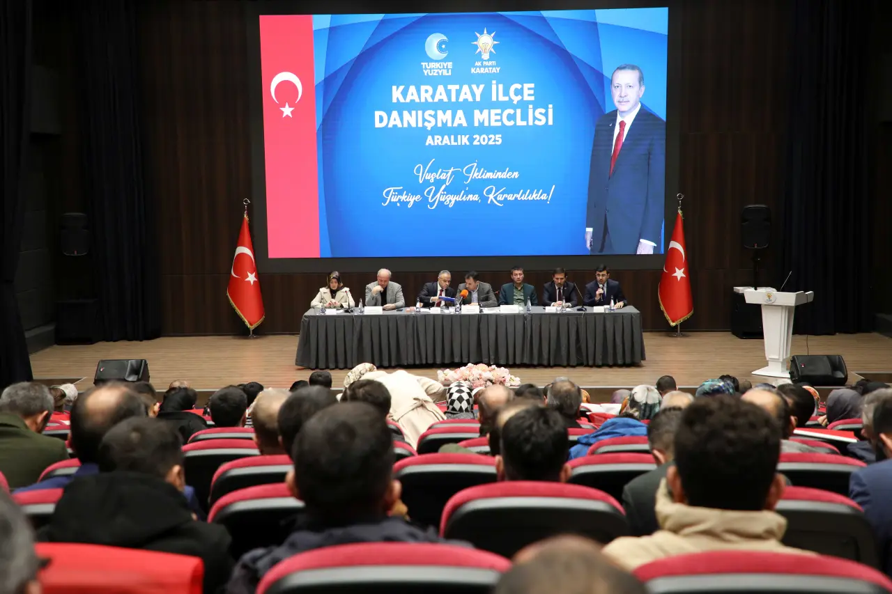 AK Parti Karatay İlçe Teşkilatı, “Vuslat İkliminden Türkiye Yüzyılı’na Kararlılıkla” sloganıyla Aralık 2025 İlçe Danışma Meclisi Toplantısı’nı yoğun katılımla gerçekleştirdi. Toplantıda Türkiye Yüzyılı vizyonu doğrultusunda yürütülen teşkilat çalışmaları ele alınarak, mahalle bazlı faaliyetler değerlendirildi.