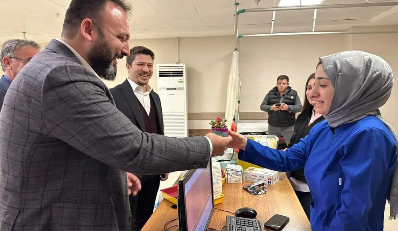 Seydişehir'de gerçekleştirdiği seçim çalışmaları kapsamında Cumhur ittifakı Seydişehir Belediye Başkan adayı Abdulmuttalip Demirel, AK Parti İlçe başkanı Kemalettin Atalay, MHP İlçe başkanı Kadir Kocabaş, Gençlik Kolları başkanı Veysel Yıldırım, Kadın Kolları başkanı Fatma Aydın, Ülkü Ocakları Başkanı Yasin Yakar ve teşkilat mensupları ile birlikte Devlet Hastanesi'nde sağlık çalışanlarını ziyaret eden Konya Milletvekili Selman Özboyacı hastanede görev yapan sağlık çalışanlarının 14 Mart Tıp Bayramlarını kutlayarak günün anısına hediye takdiminde bulundu ve çalışmalarında başarılar diledi.